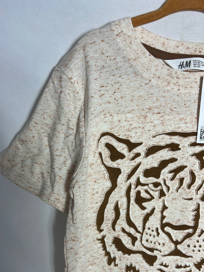 H&M. Camiseta beige jaspeada tigre textura. T 6-8 años