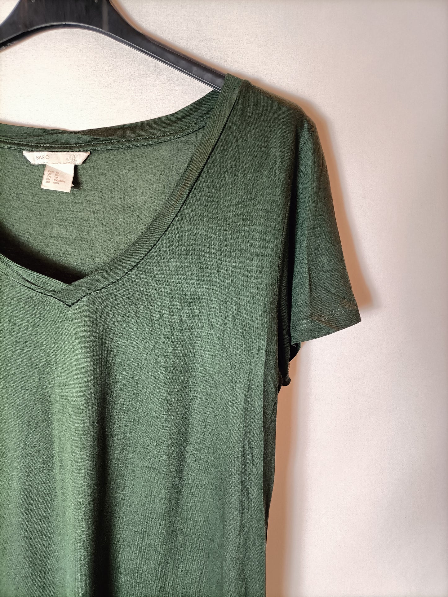 H&M. Camiseta verde oscuro. T XS