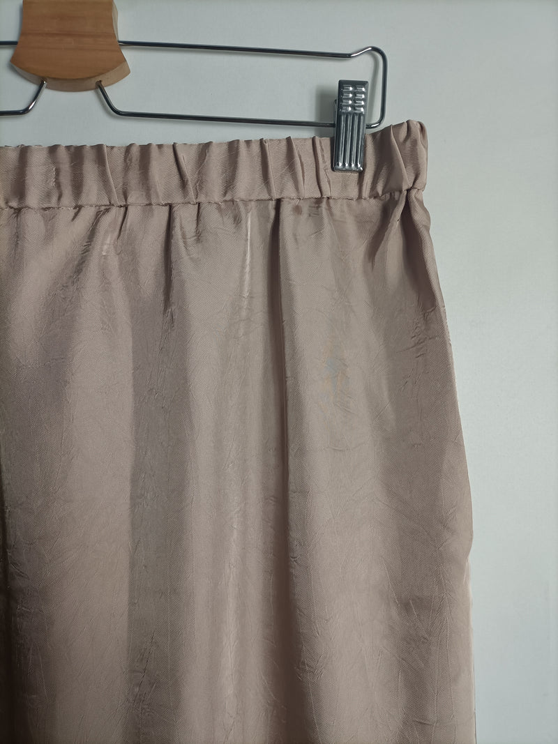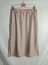 NUEVO CON ETIQUETA. Falda rosa midi con apertura lateral y cintura elástica.