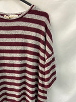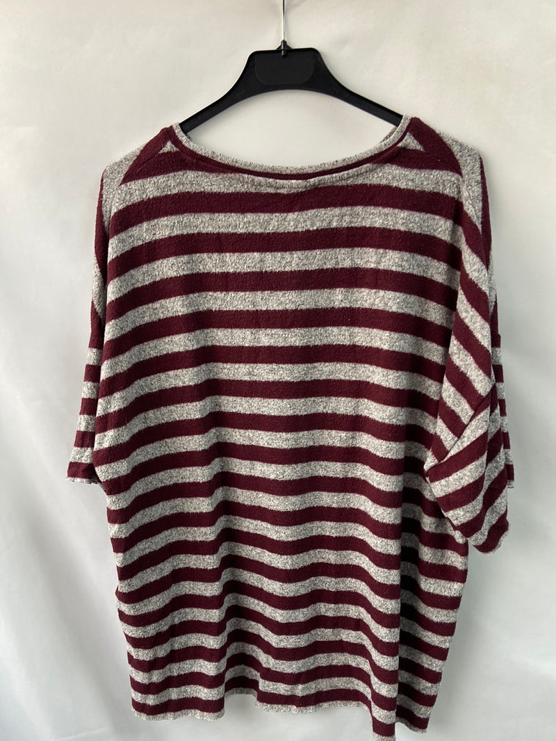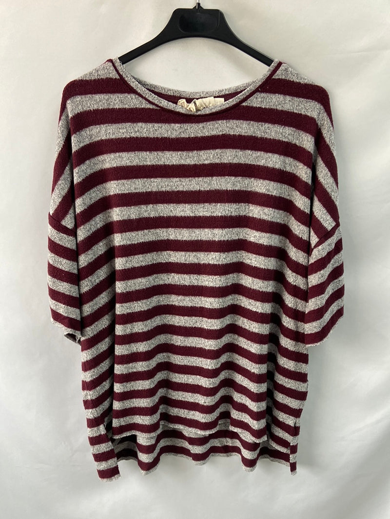 Jersey/top elástico de rayas gris y burdeos de tejido de pelito. Larguita y elástica.