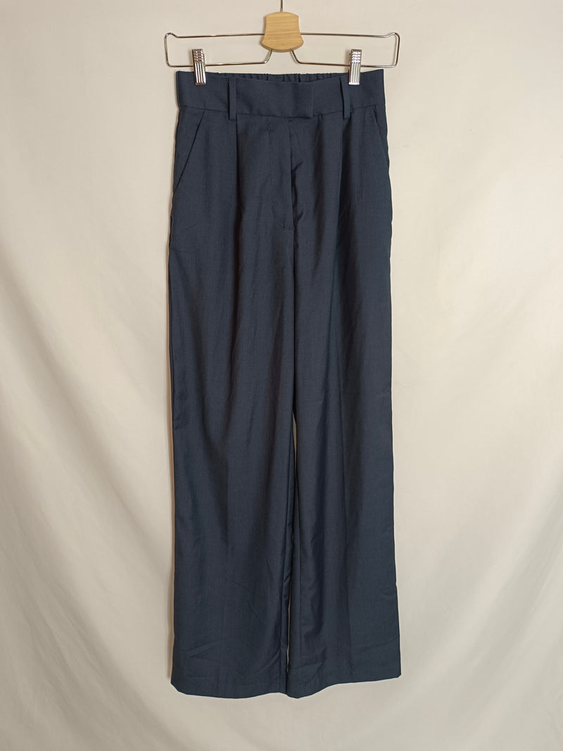 Pantalón pinzas azul apagado, cintura elástica. anchos.