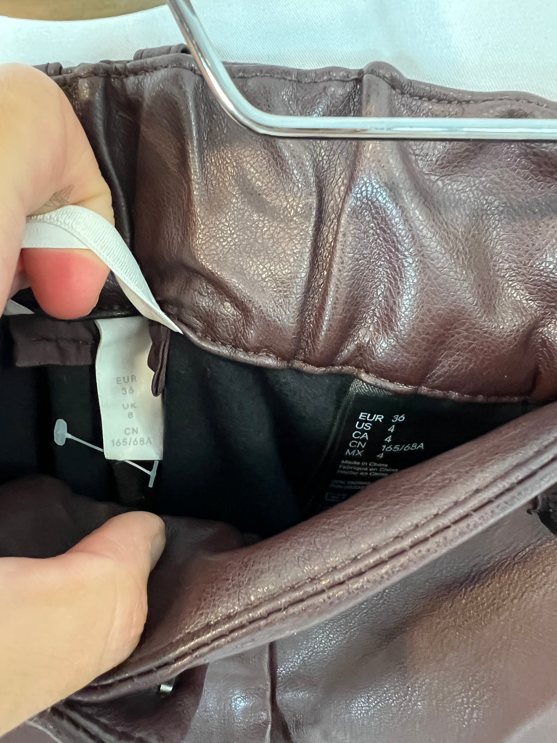 Pantalón culotte marrón efecto piel . Cintura 33ck, largo 89cm