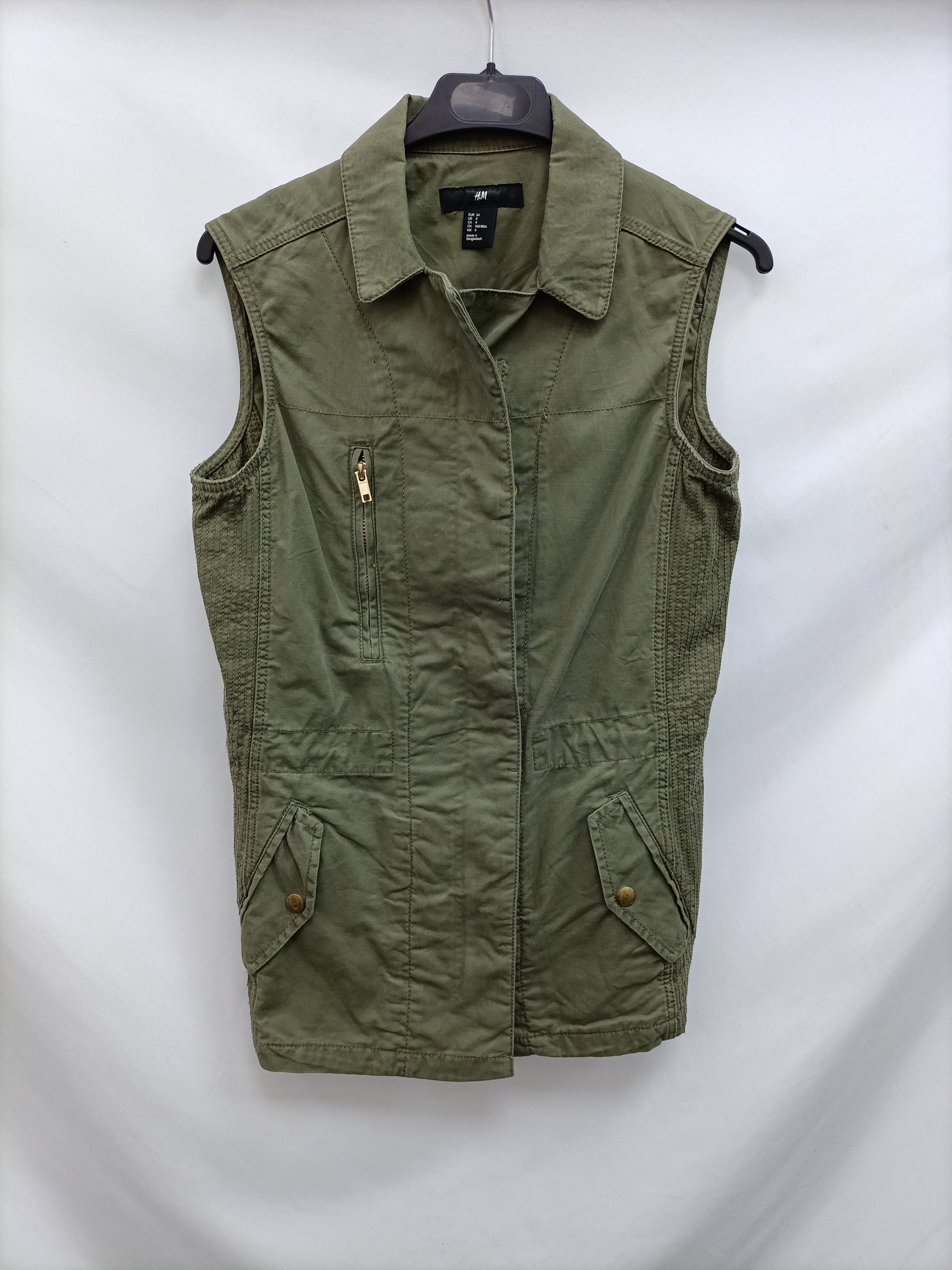 H&M. Parka verde sin mangas T.34