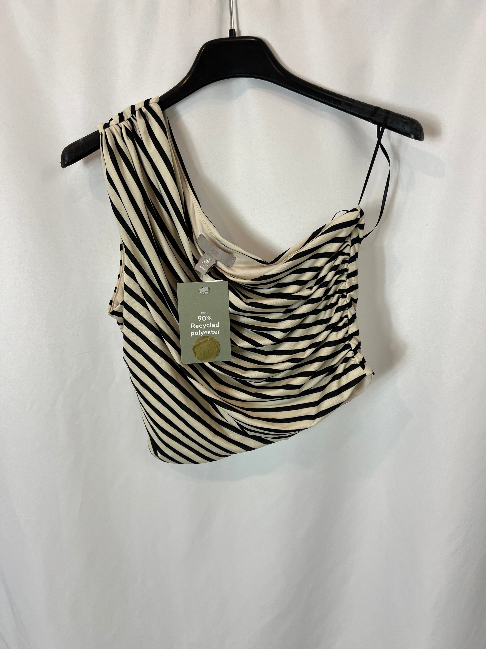 NUEVO CON ETIQUETA. top beige y negro de rayas escote asimétrico