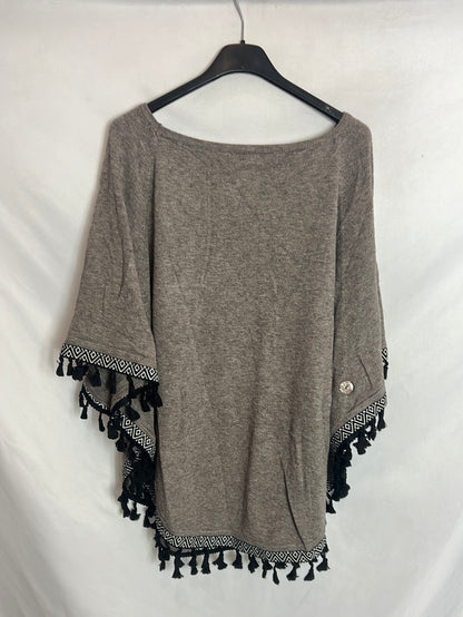 SWEET LADY. Jersey estilo poncho borlas. TS/M