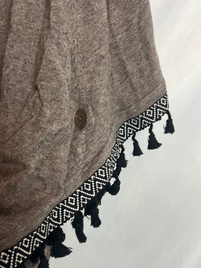 Jersey estilo poncho gris con borlas