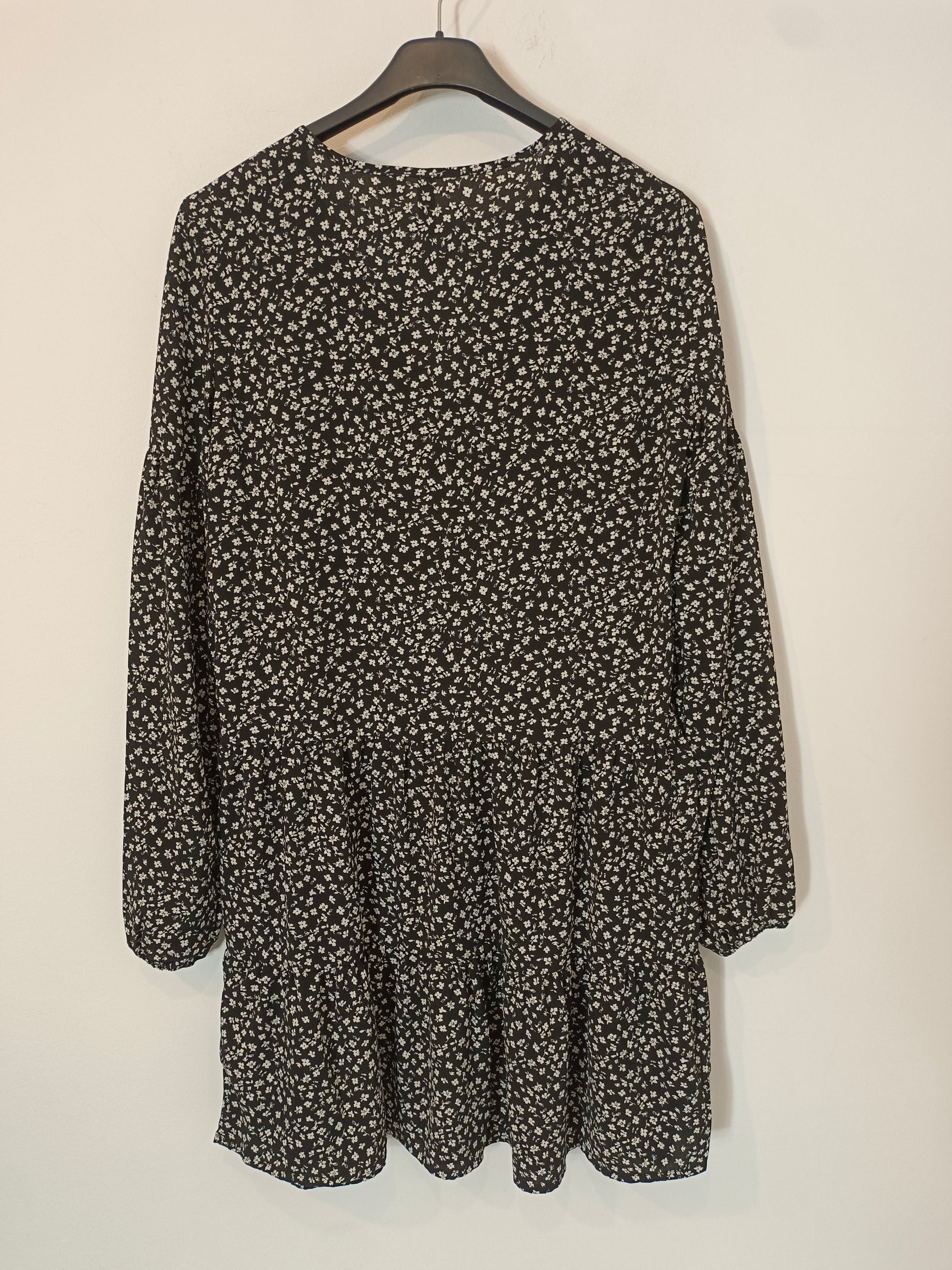 H&M. Vestido corto negro flores blanca T.xs