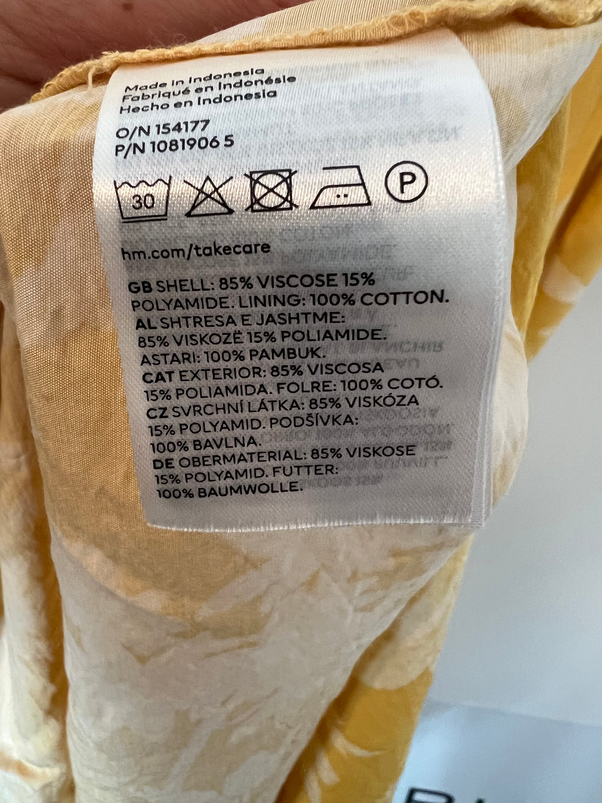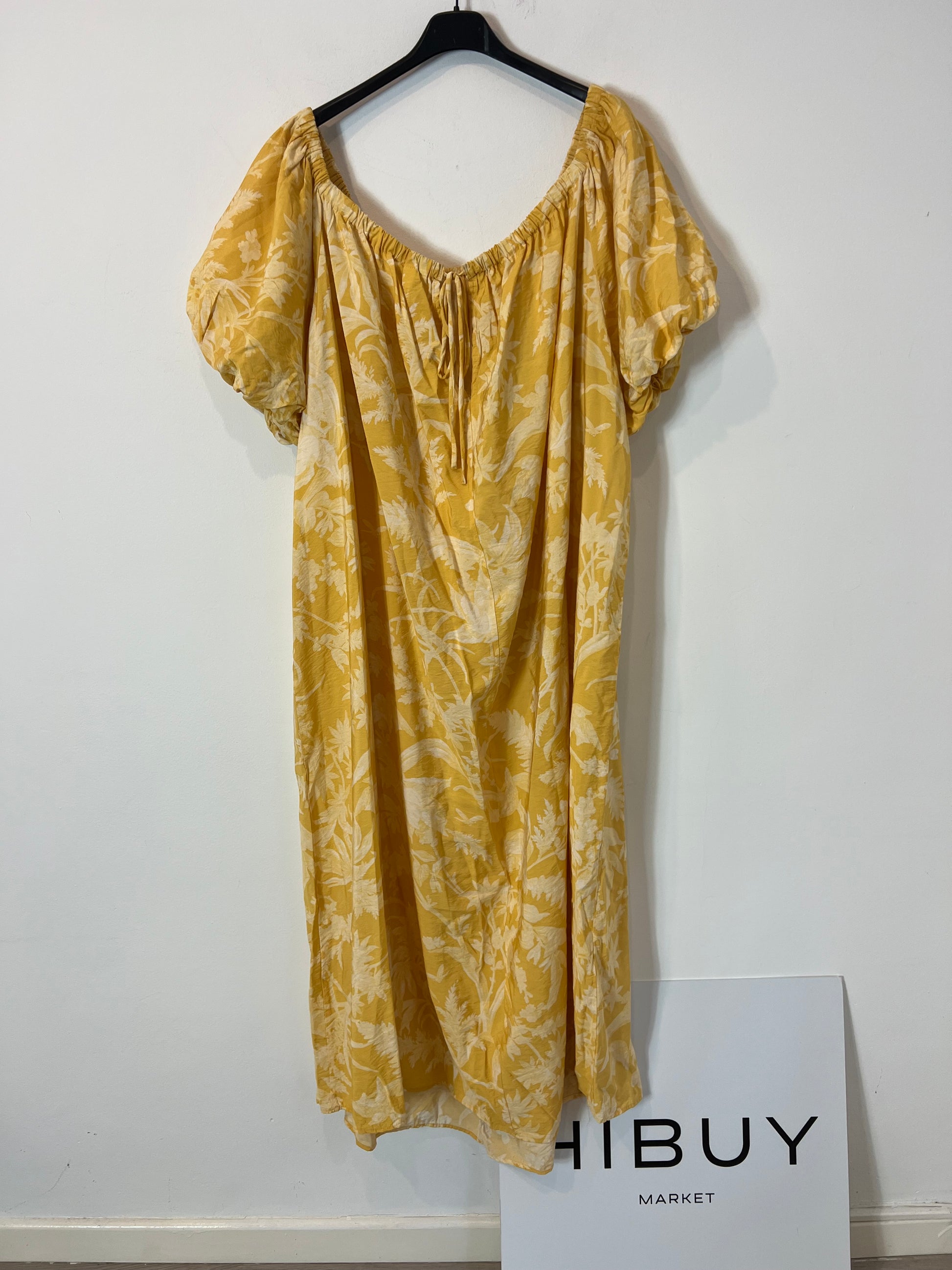 Vestido largo amarillo con estampado de flores y cuello barco. de sisa a sisa cm largo cm
