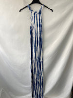 vestido largo cuello halter estampado tie dye en blanco y azul. Largo 154 cm