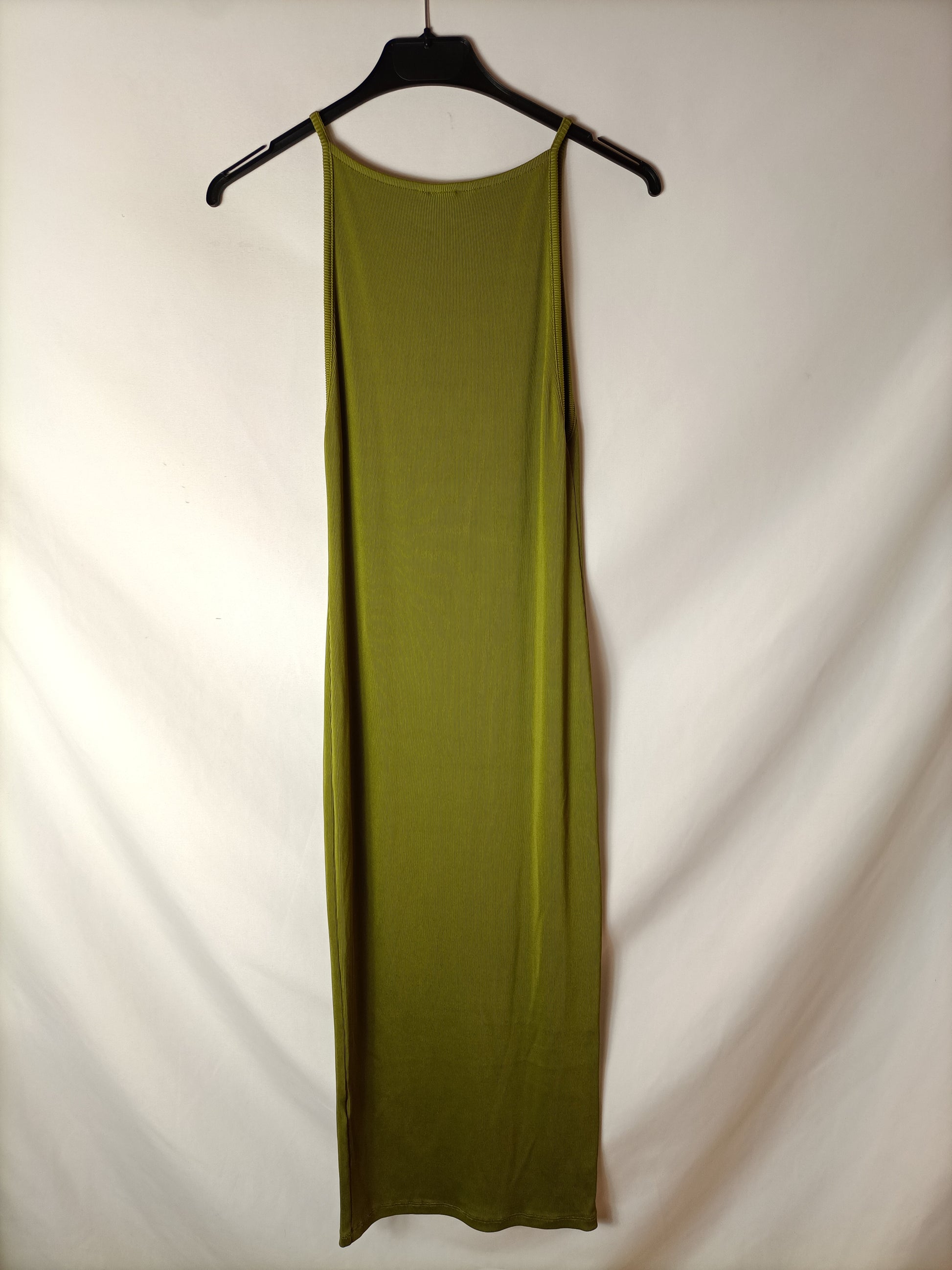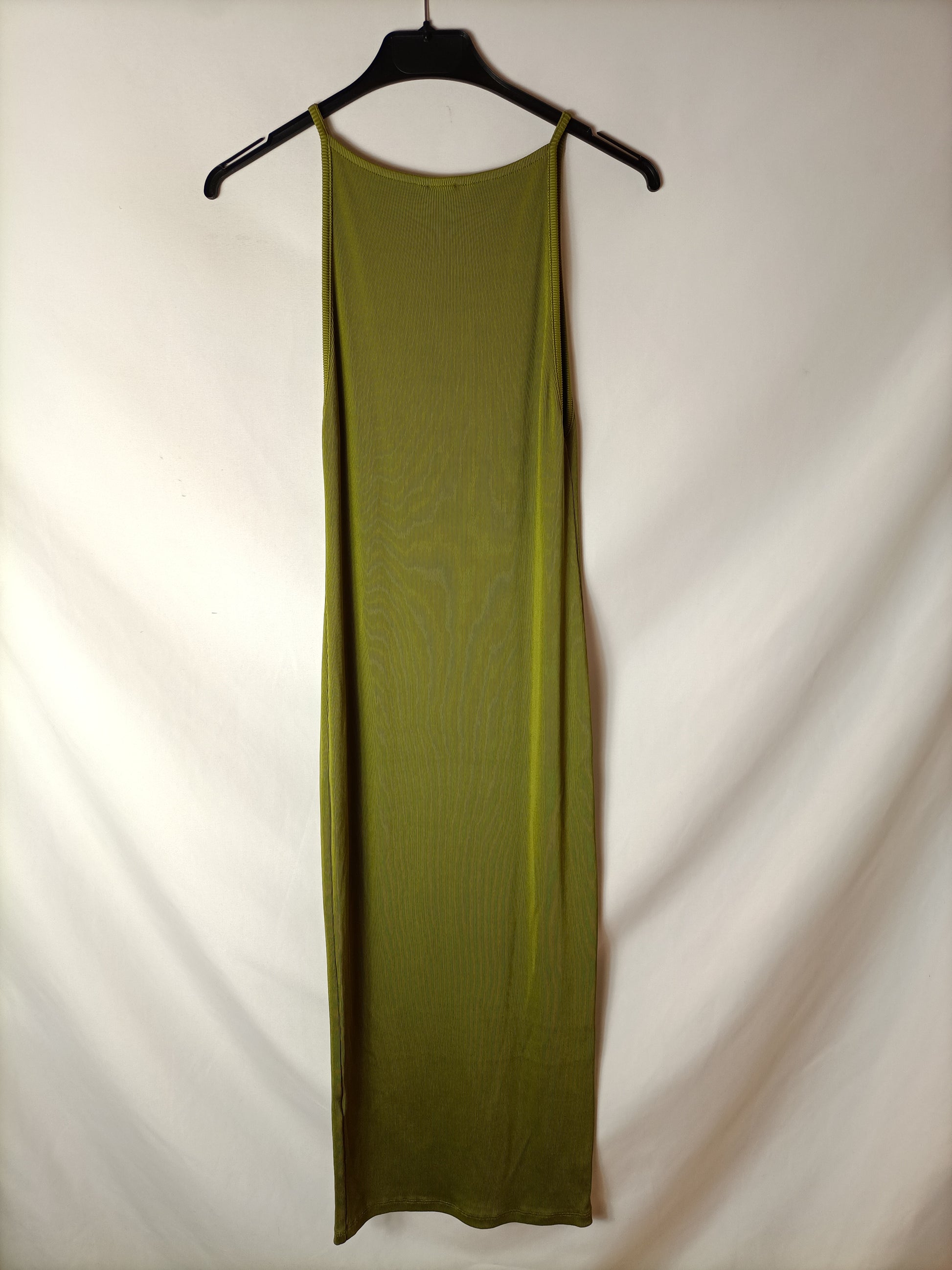 Vestido midi vede de tejido de canalé. Entallado y elástico.
