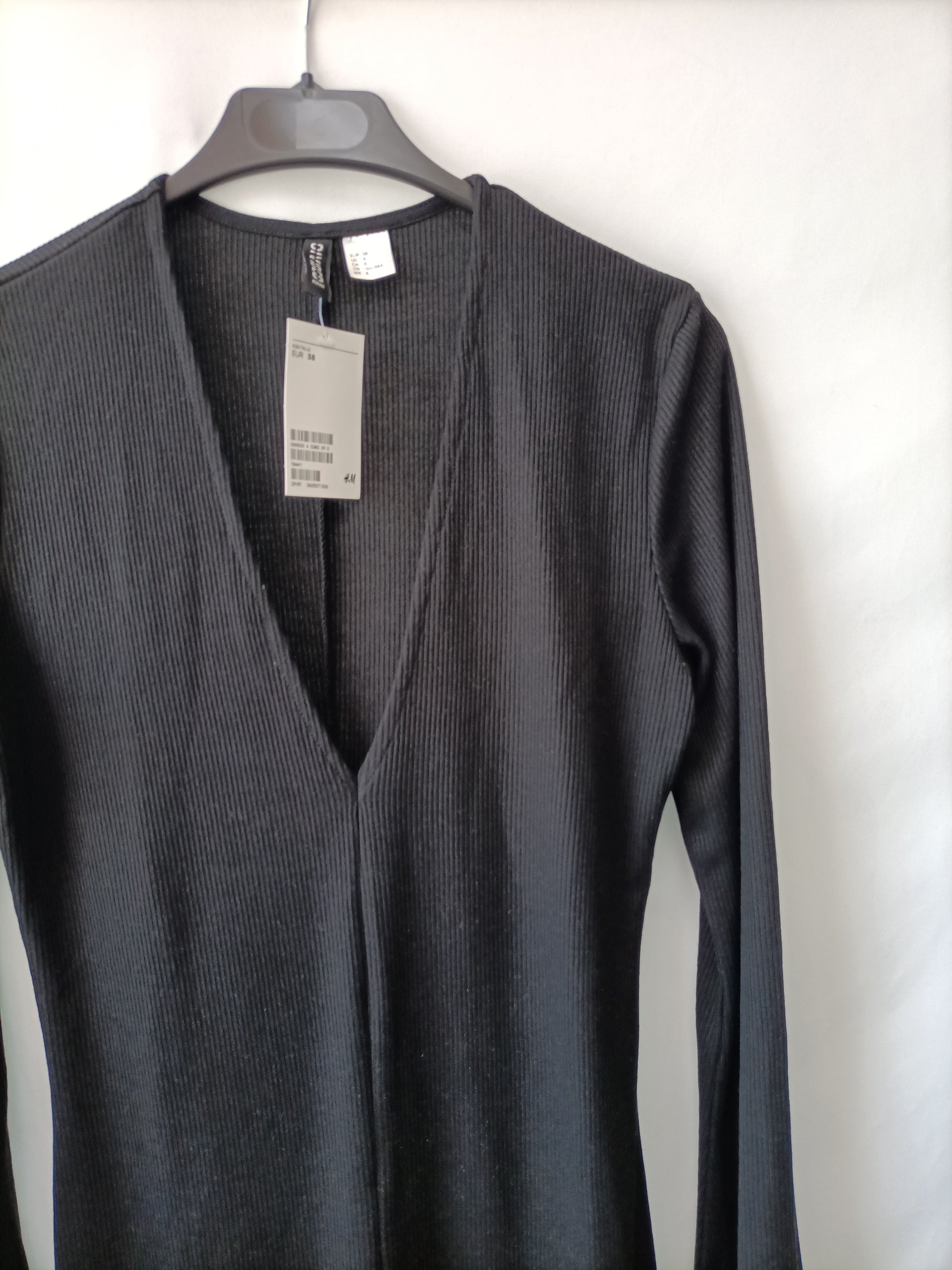H&M.Vestido negro canalé T.38