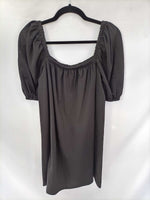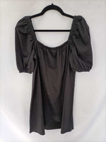 Vestido negro cortito estilo oversized con mangas mangas Abullonadas y escote elástico. Largo 89 cm