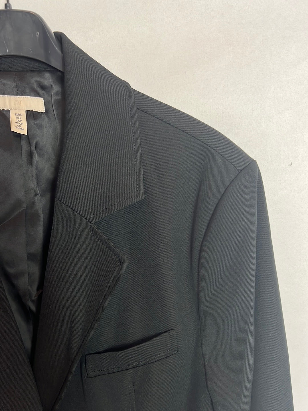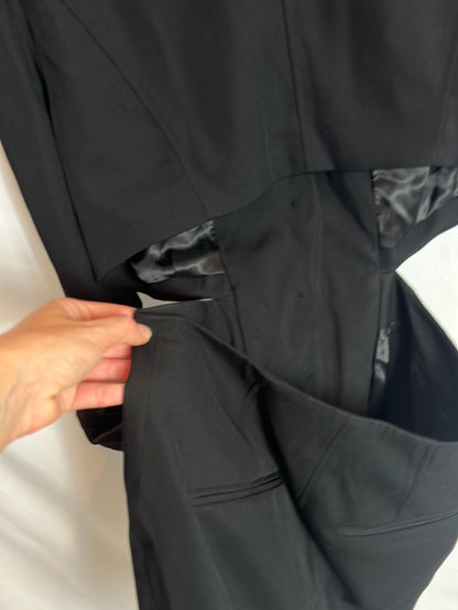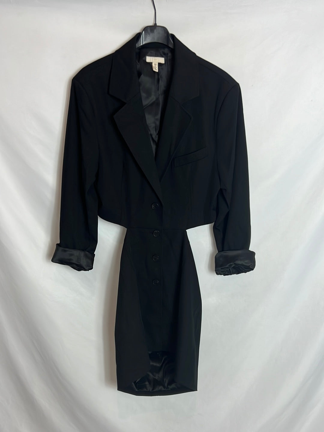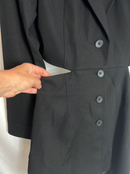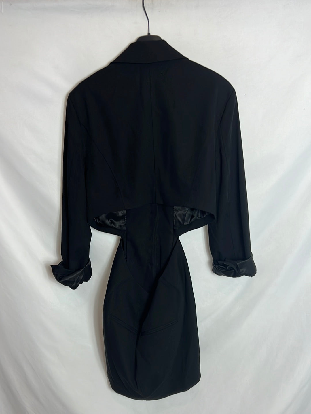 vestido corto estilo blazer negro con espalda al aire. De sisa a sisa 43cm, largo falda 40cm