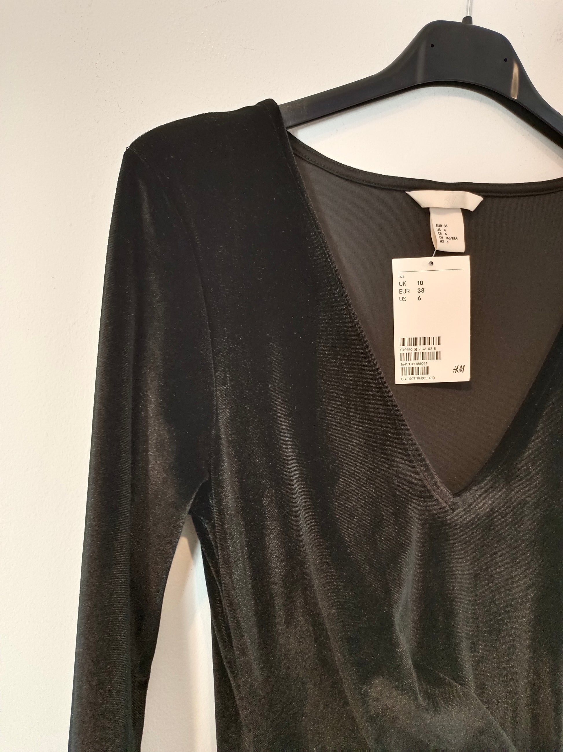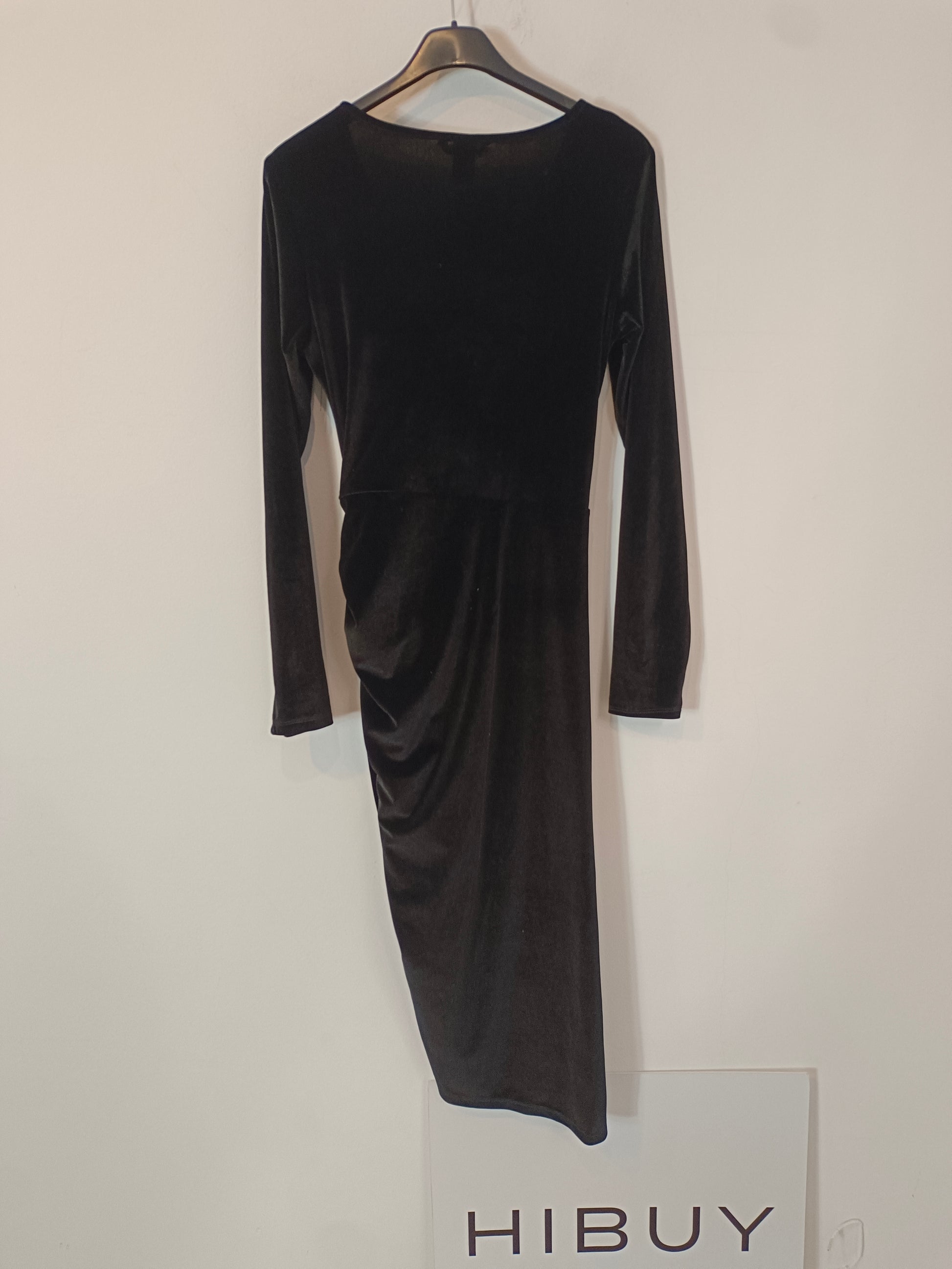 NUEVO CON ETIQUETA. vestido midi negro de terciopelo con detalle cruzado delantero. de sisa a sisa 42 cm cintura 30 cm largo 116cm.