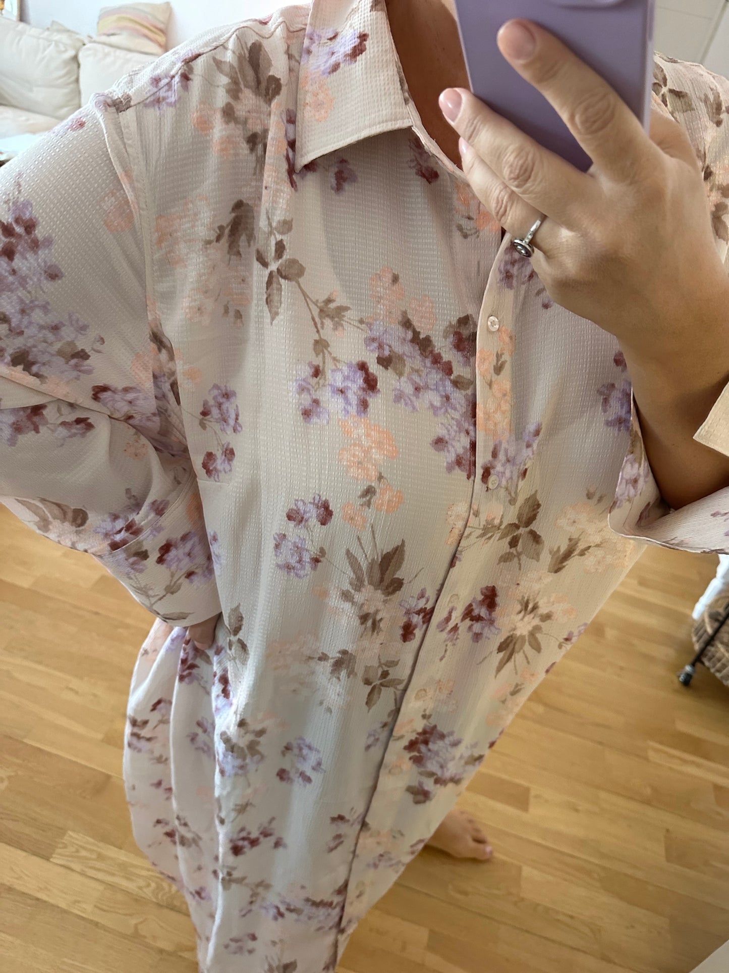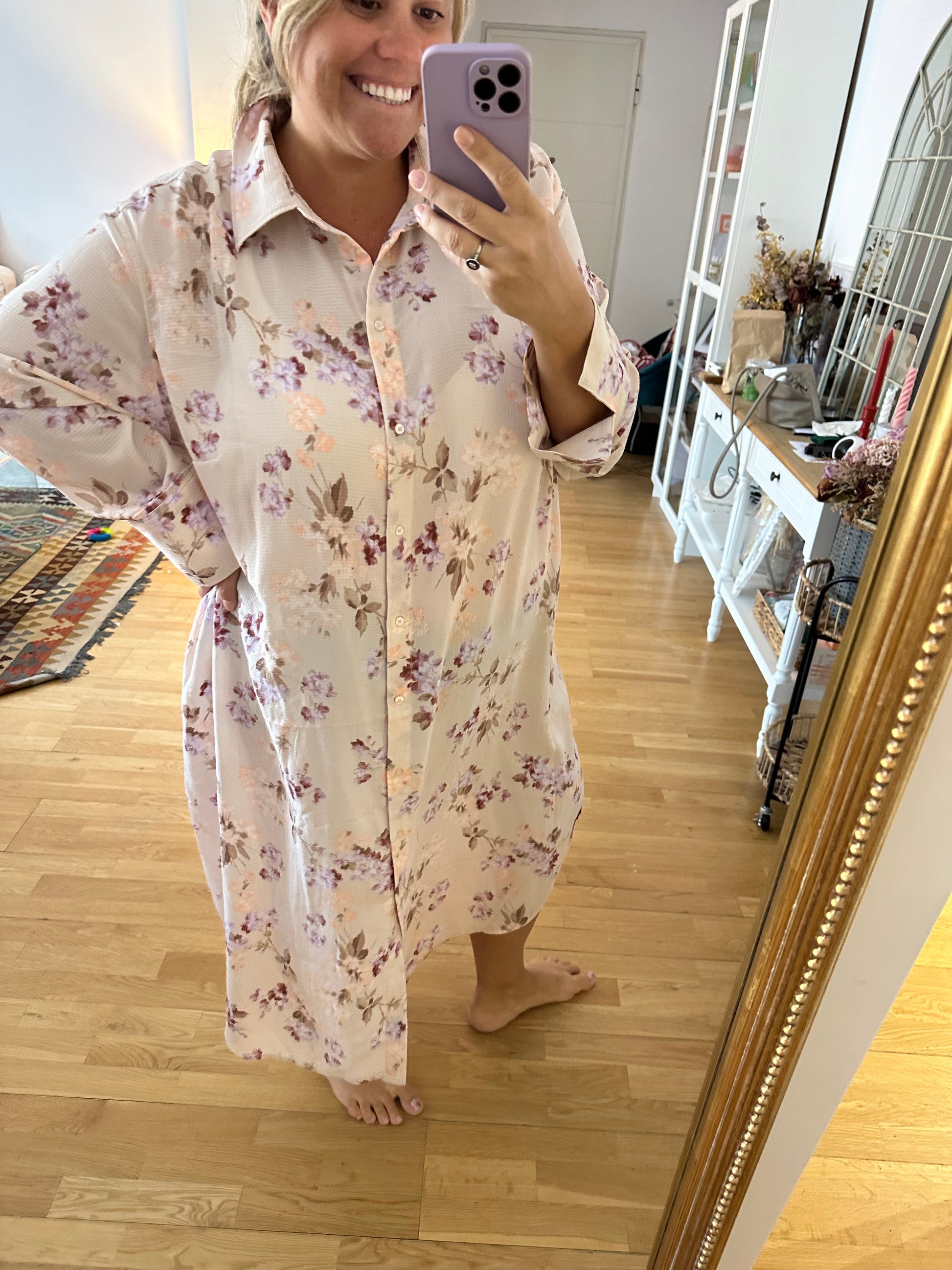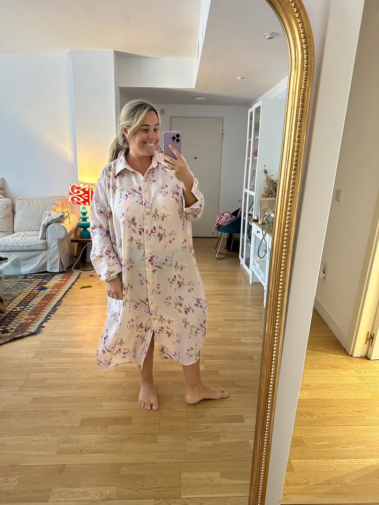 vestido rosa palo estilo camisero abotonado. Fluido