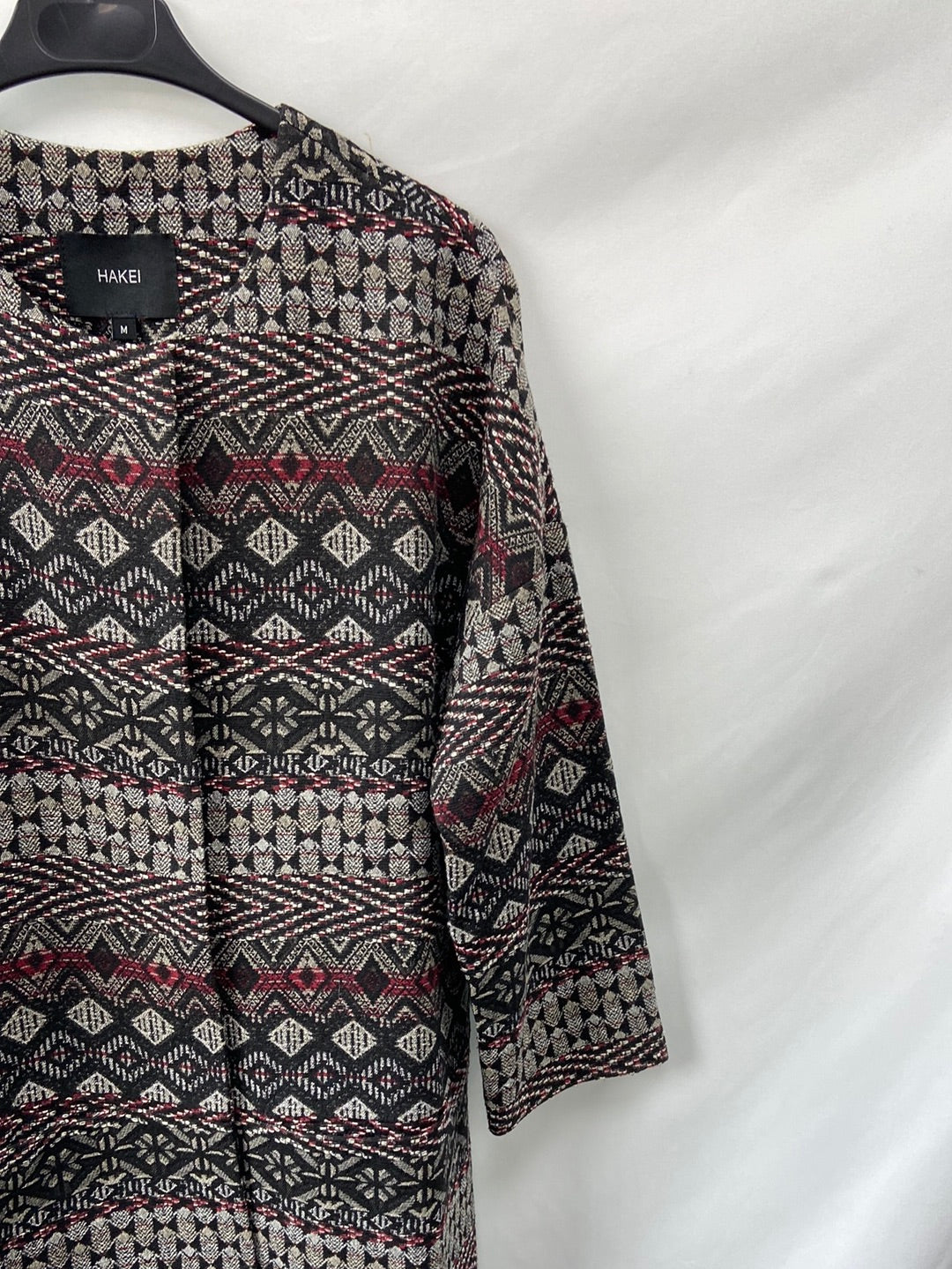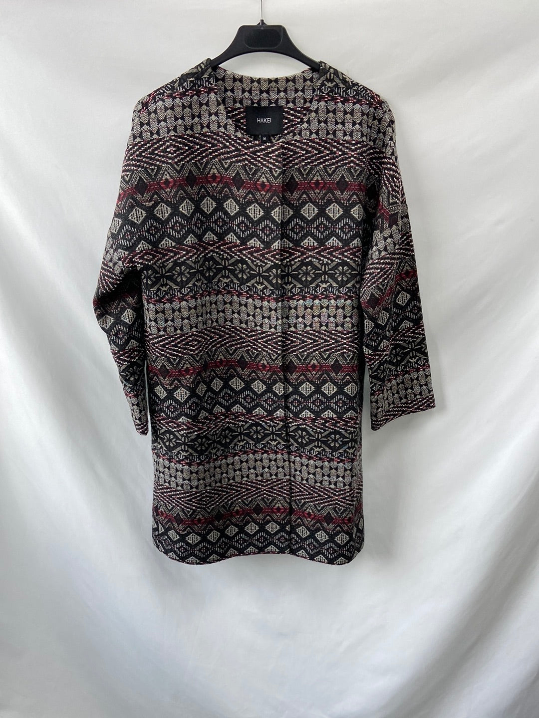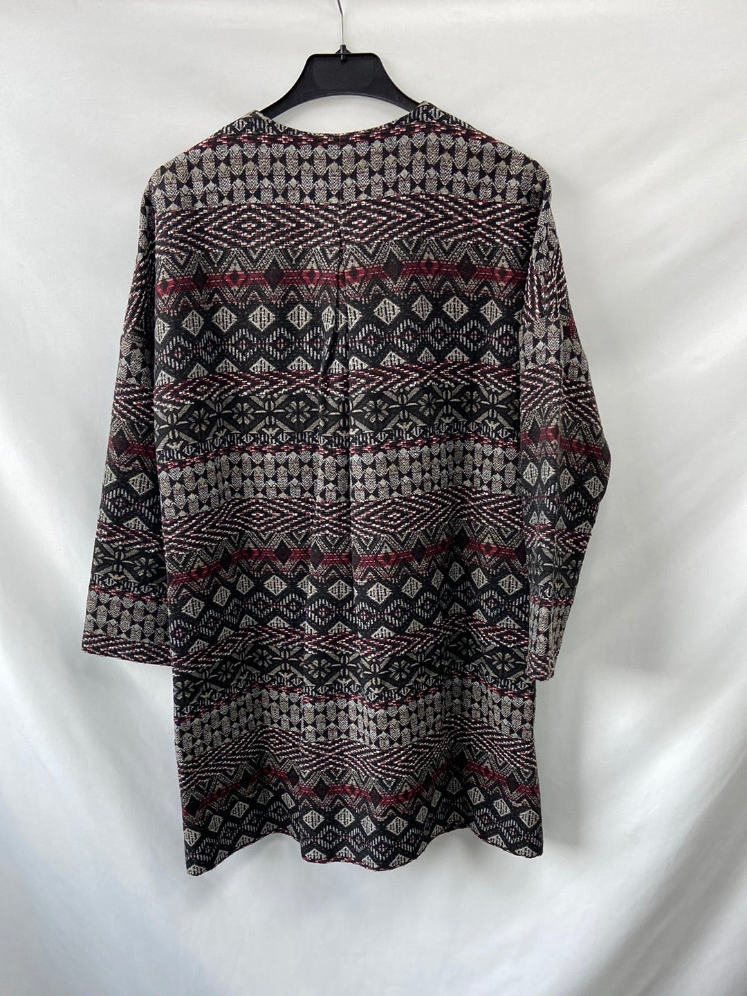 abrigo de paño estampado etnico. Se cierra con botones. De sisa a sisa 55 cm largo 84 cm .