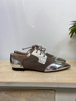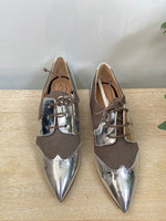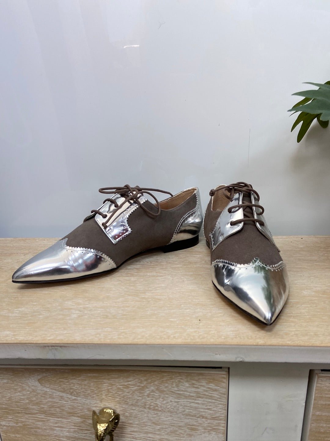 Zapato tipo oxford de pico en plateado y ante. SIN ESTRENAR