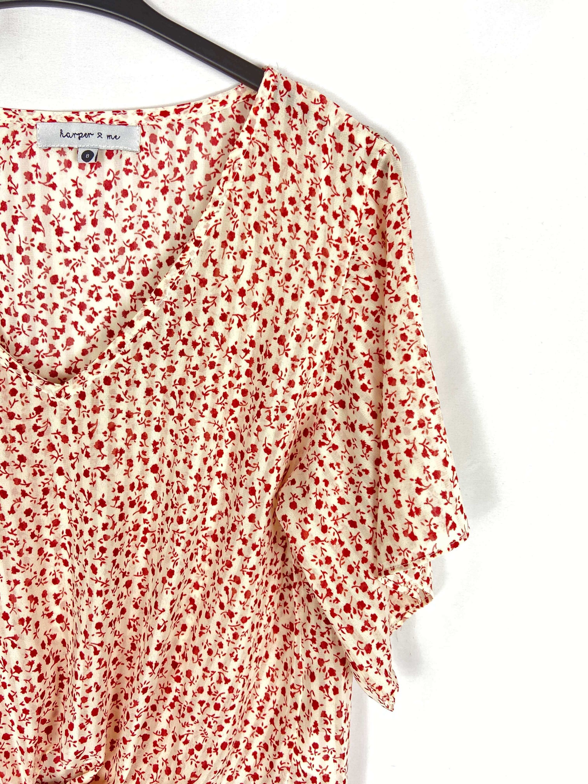 HARPER & ME. Top semitransparente estampado flores rojas T.s