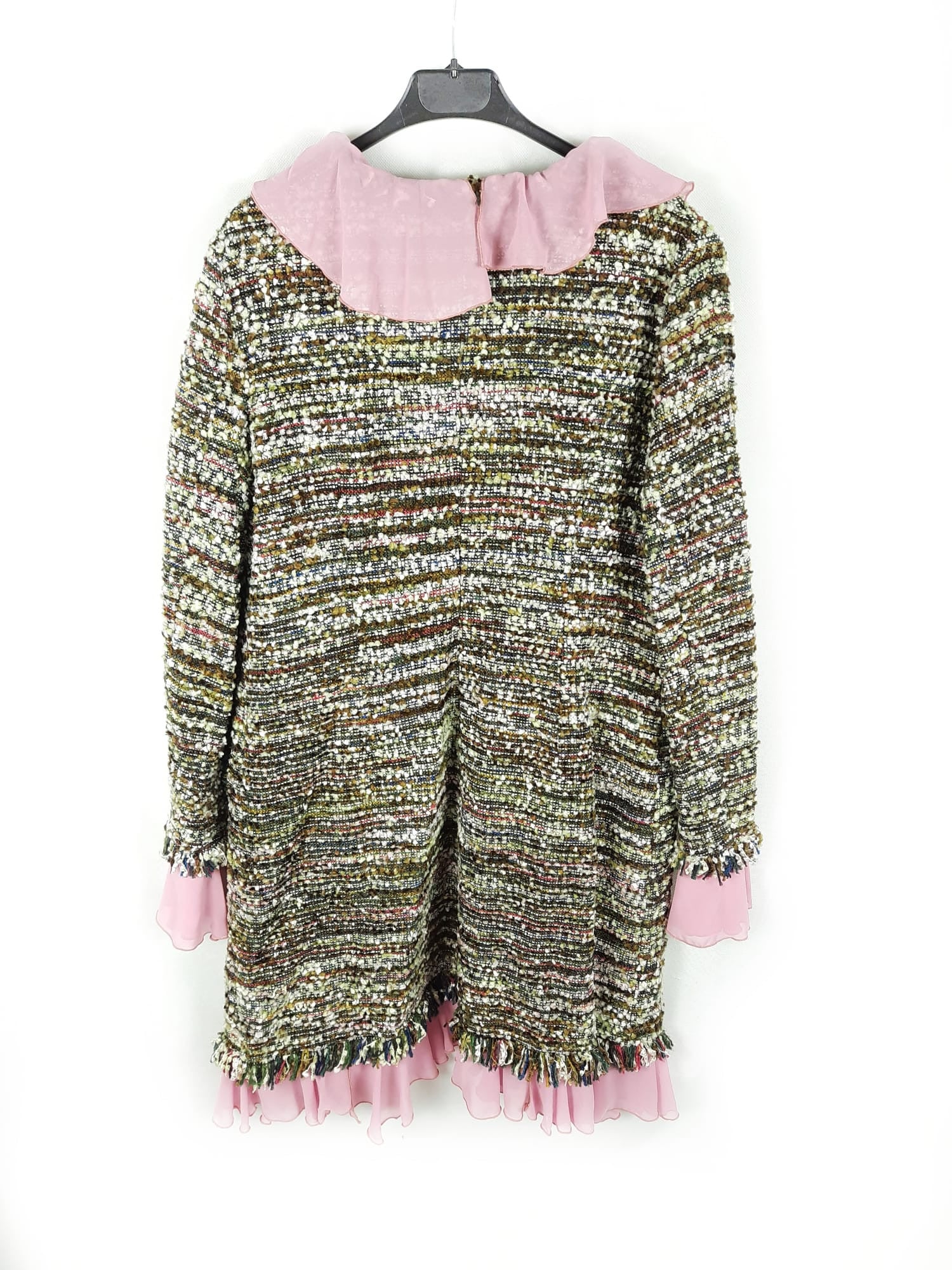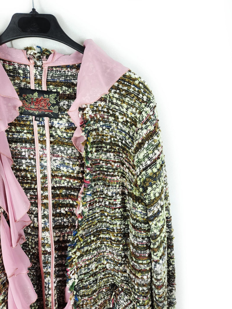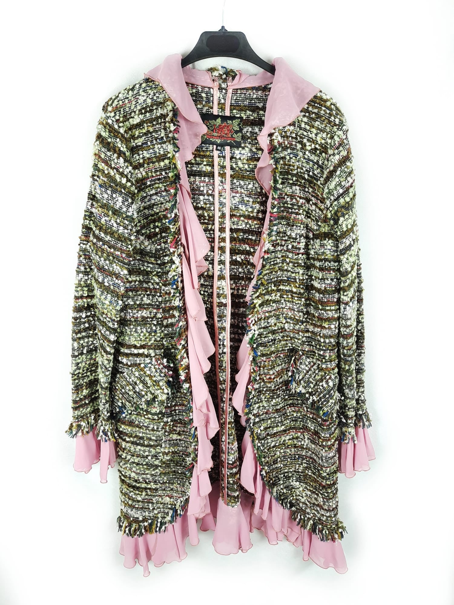 Abrigo abierto tipo tweed con volantes rosa. Largo 97 cm. Talla como una L. Talla 46 en etiqueta