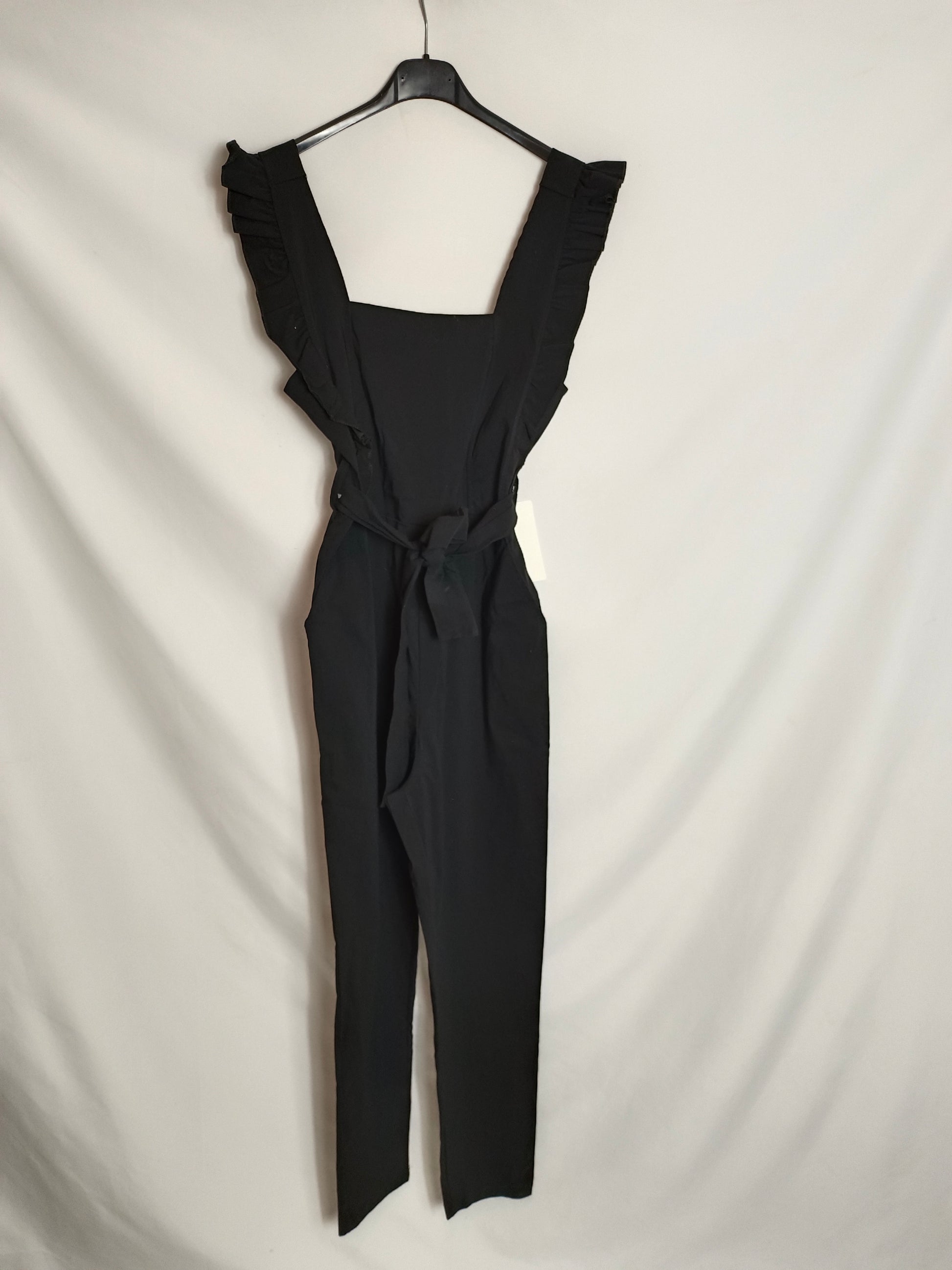 NUEVO CON ETIQUETA. Mono largo negro con volantes