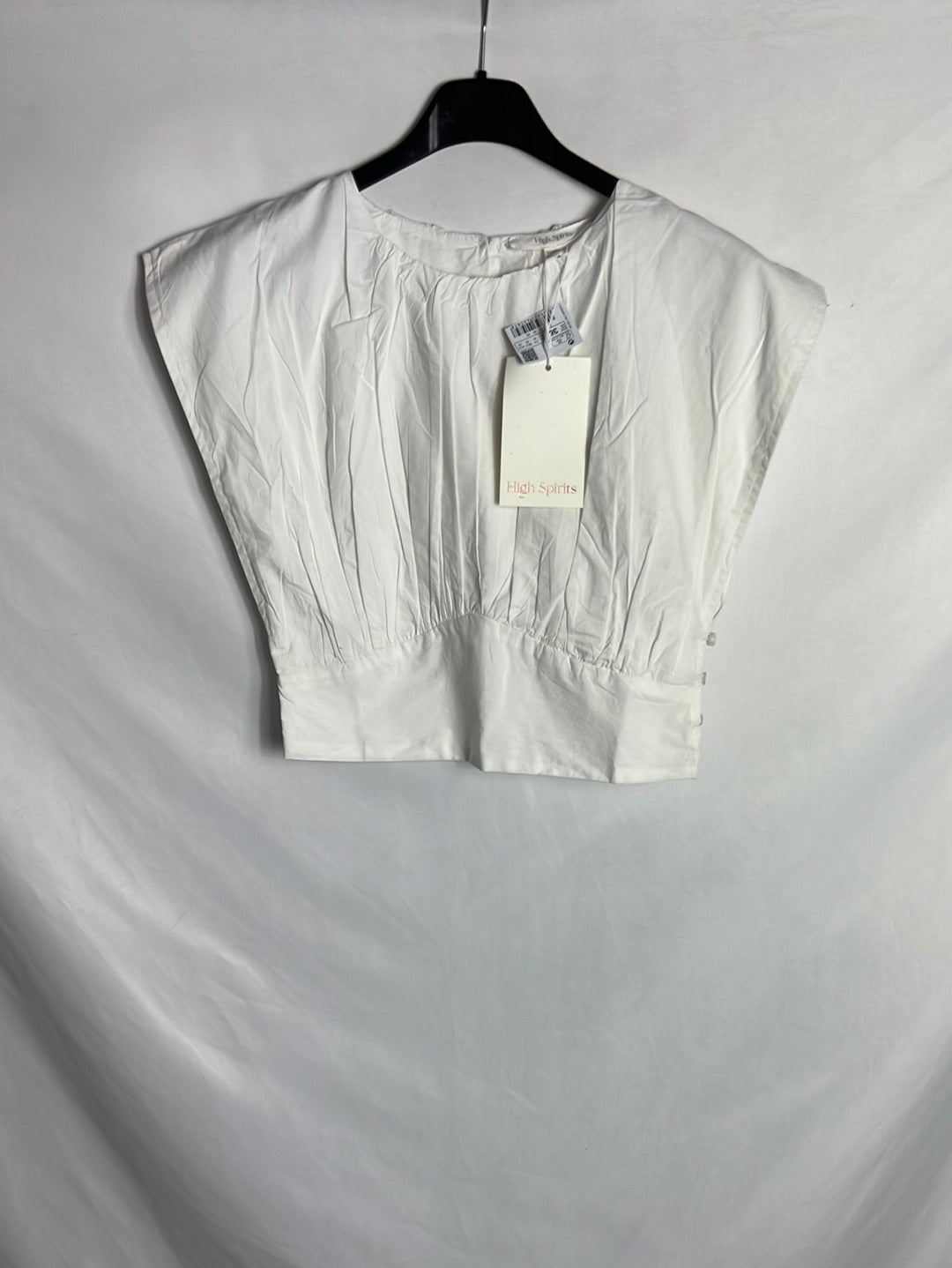 NUEVO CON ETIQUETA. Top blanco con detalles fruncidos. Largo 38cm
