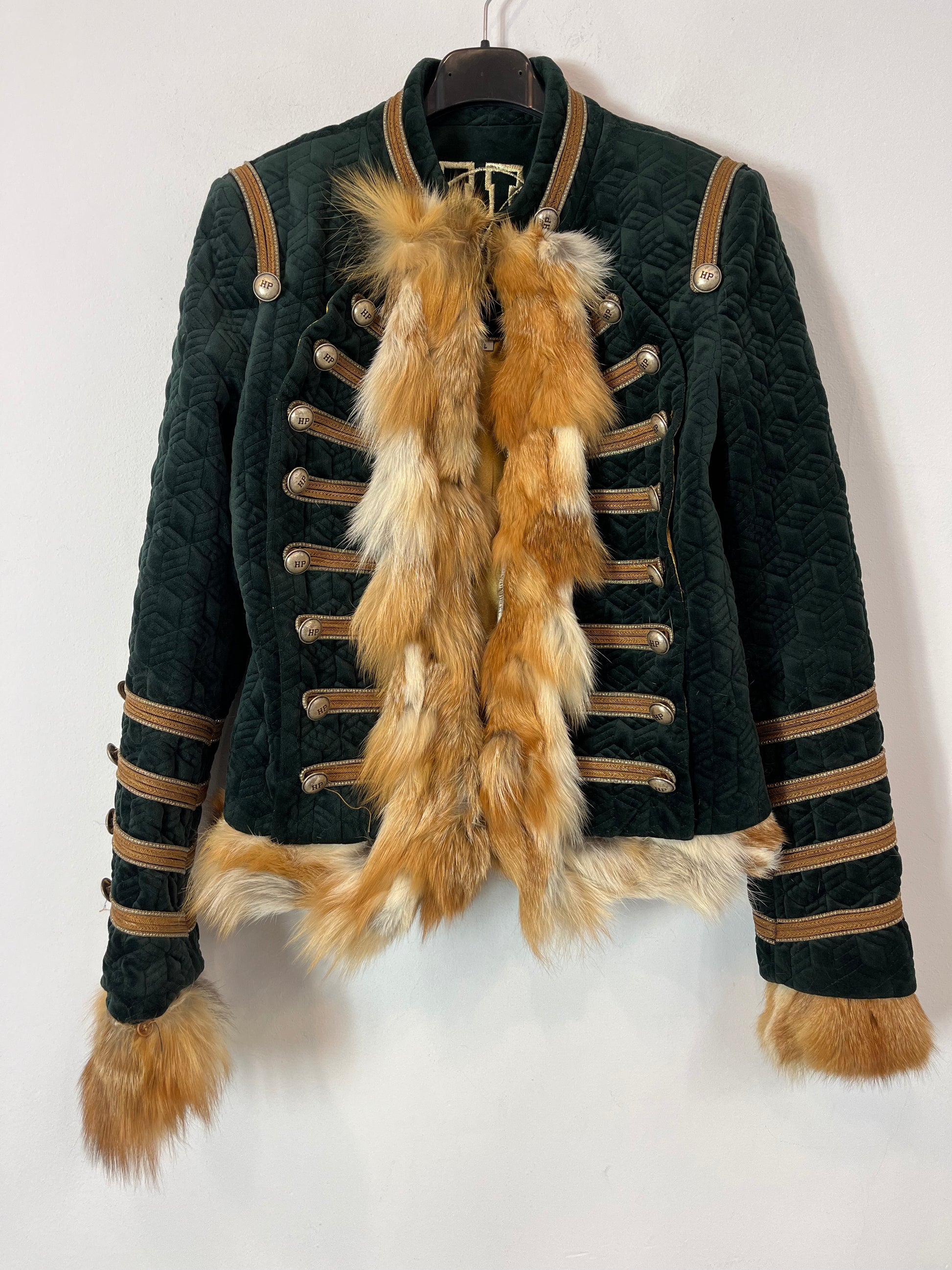 Chaqueta verde pelo extraíble. Hombros 37 cm, espalda 43 cm, largo o 52 cm incluyendo pelo