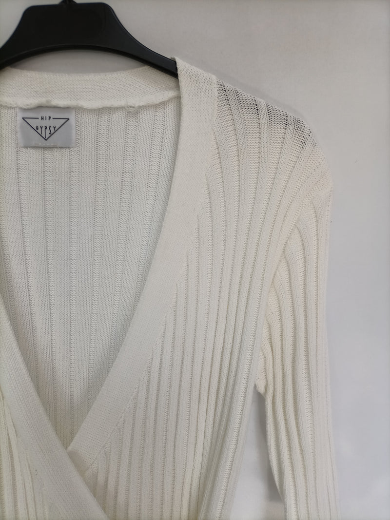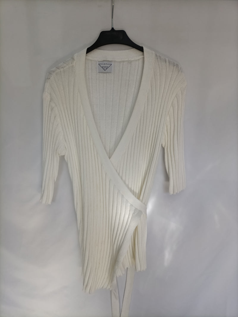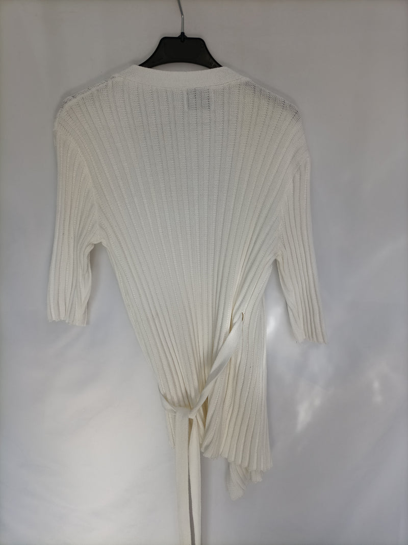 Chaqueta de canalé cruzada. Manga 3/4 elástica. se ata con un cordoncito.