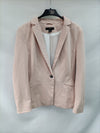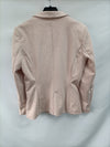 Blazer rosa palo de tejido tipo camiseta. Es fluida y no elástica. De sisa a sisa 51 cm largo 57 cm