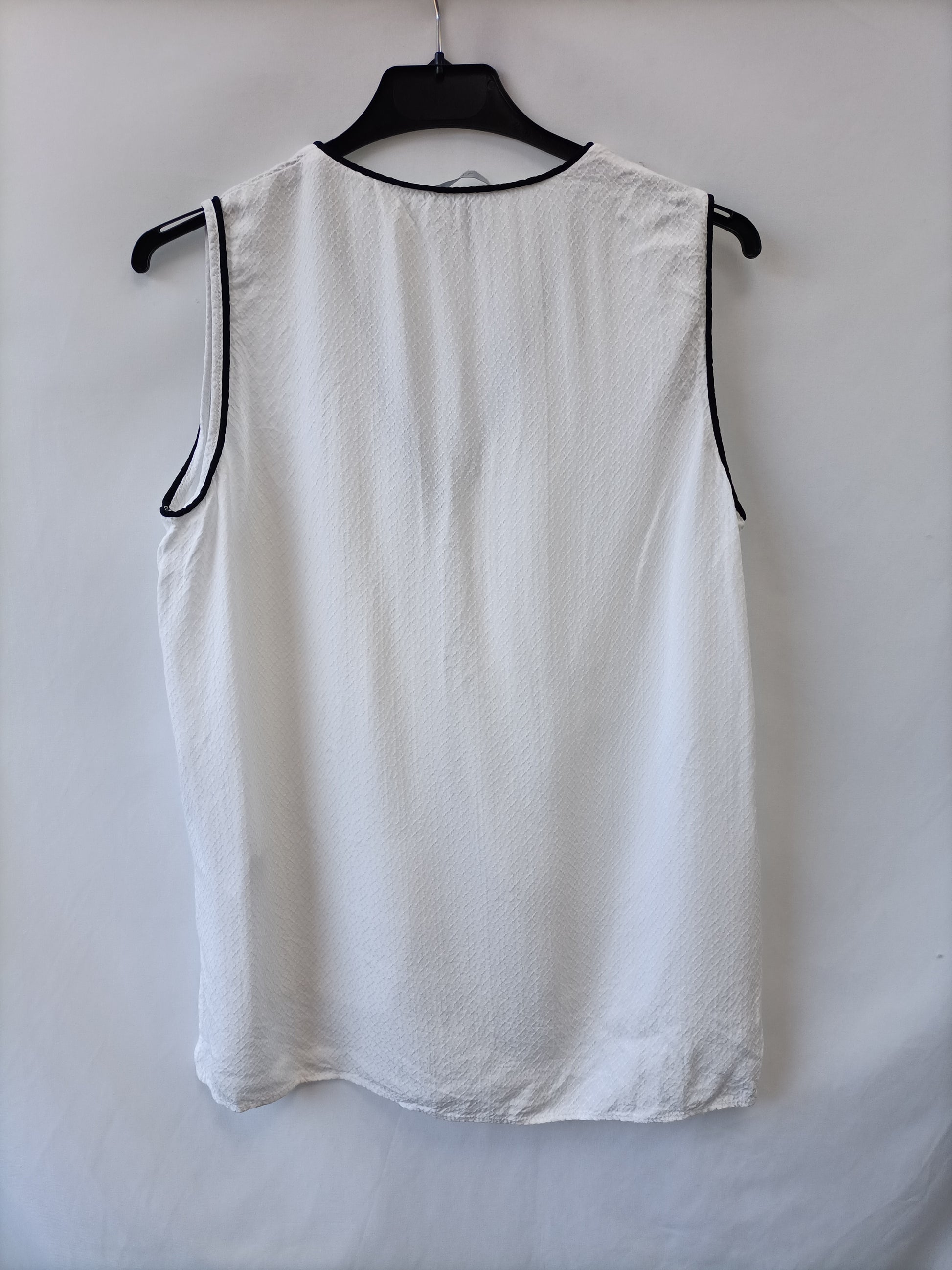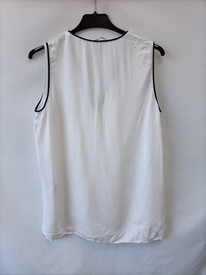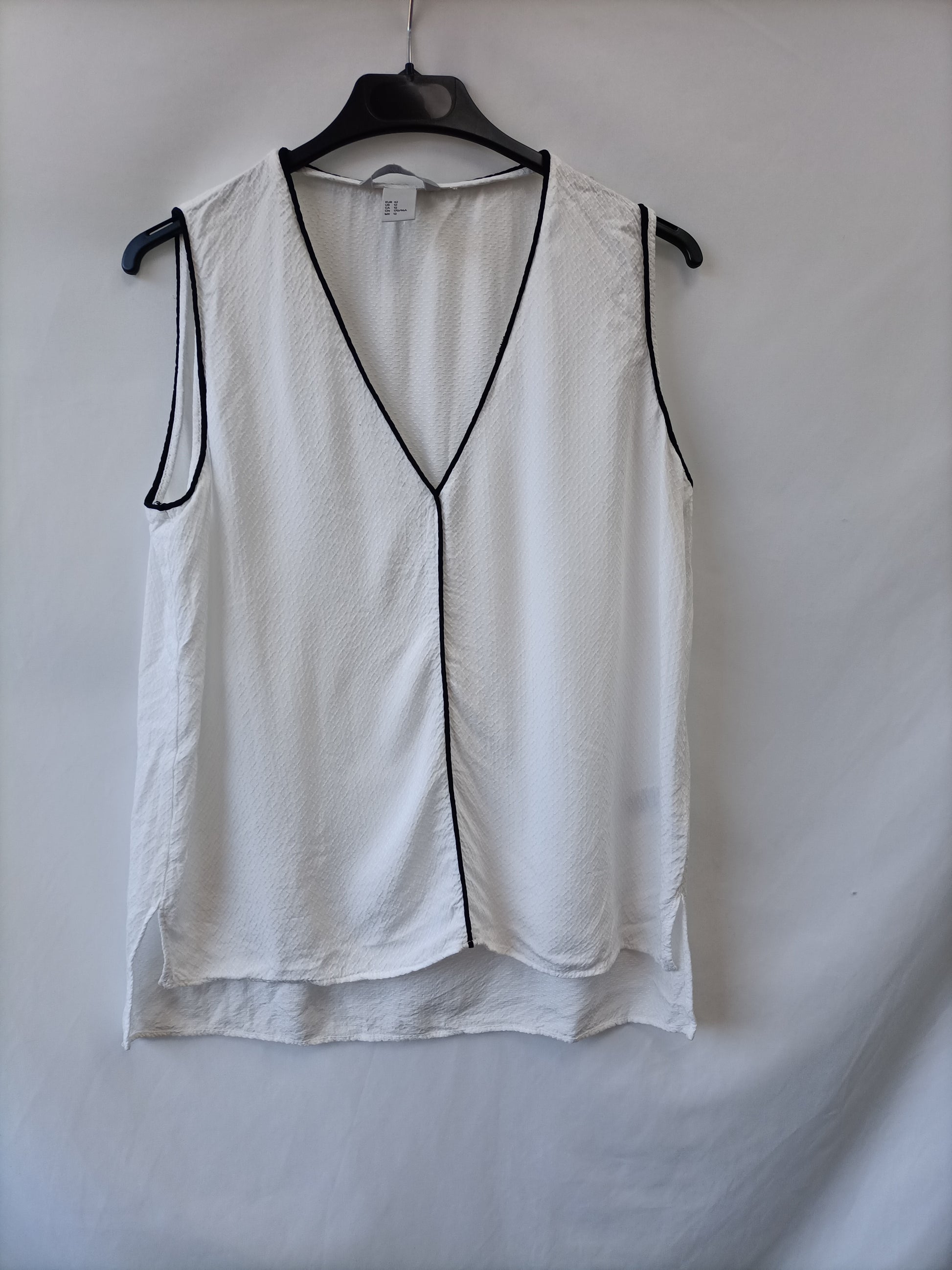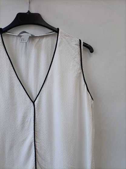H&M. Blusa blanca textura borde negro T.42