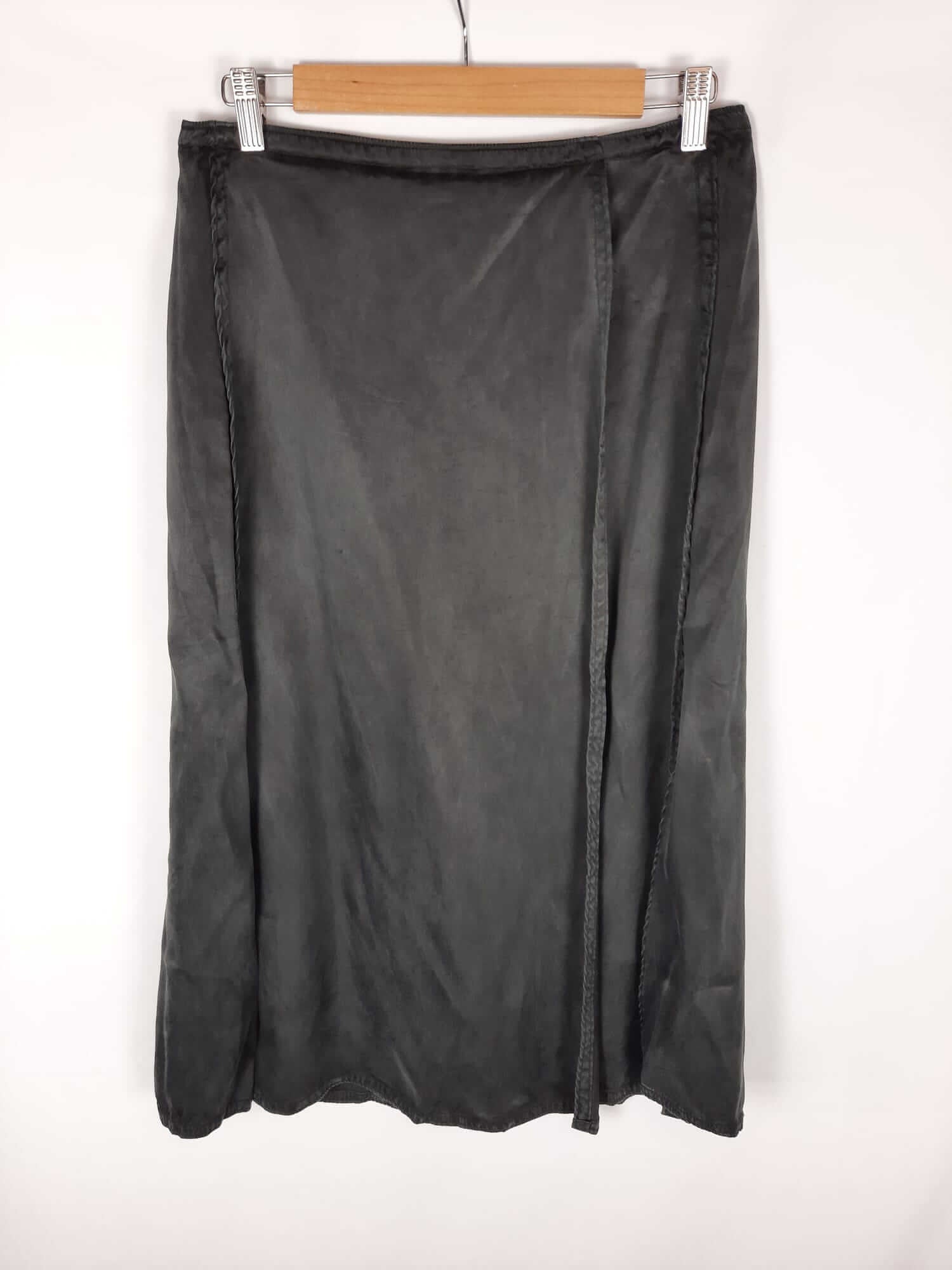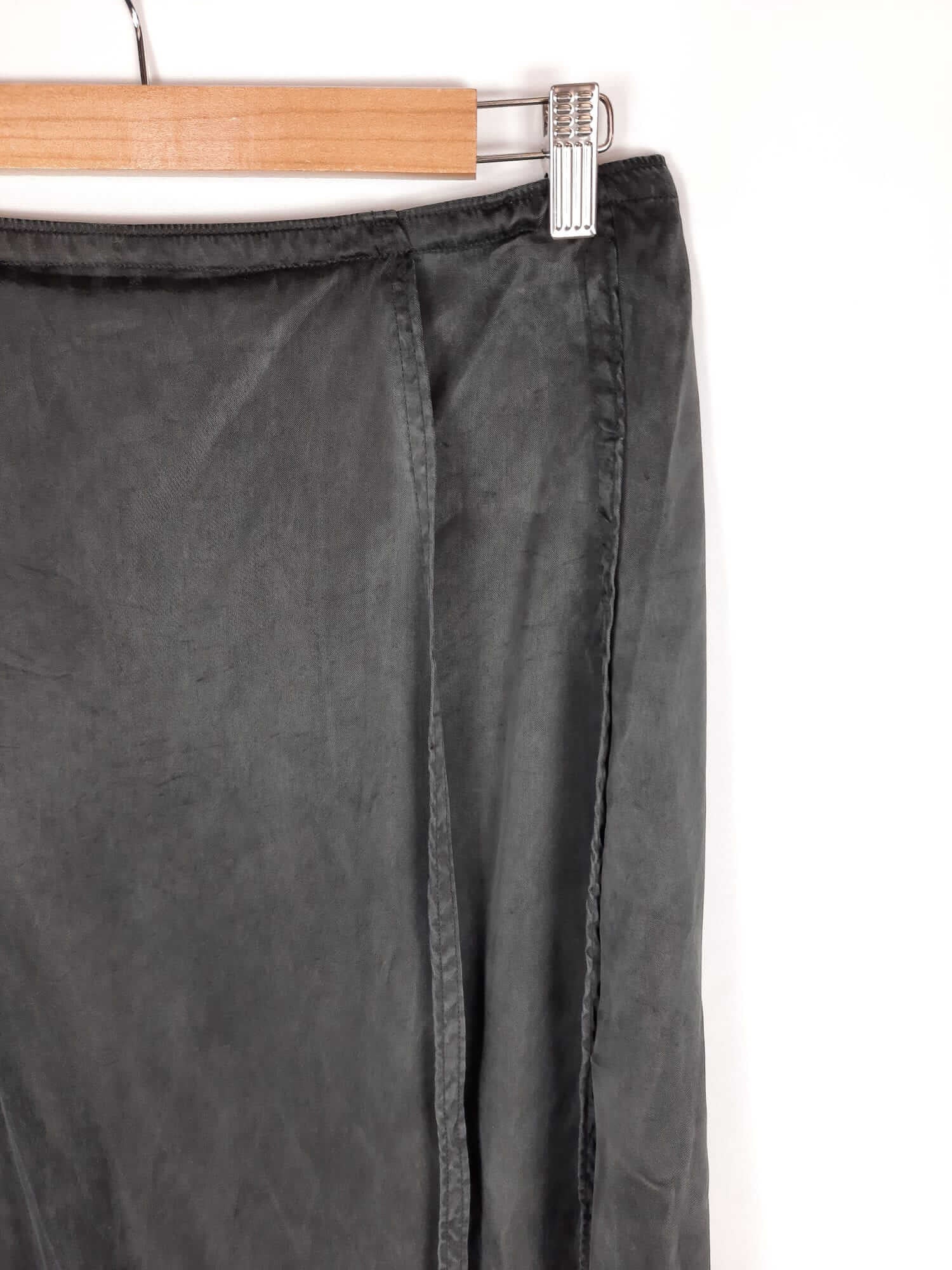 Hym. Falda negra midi estilo pareo fluida con aperturas laterales y trasera. No elástica. Cintura 39 cm largo 81 cm