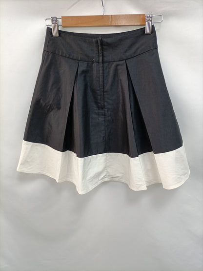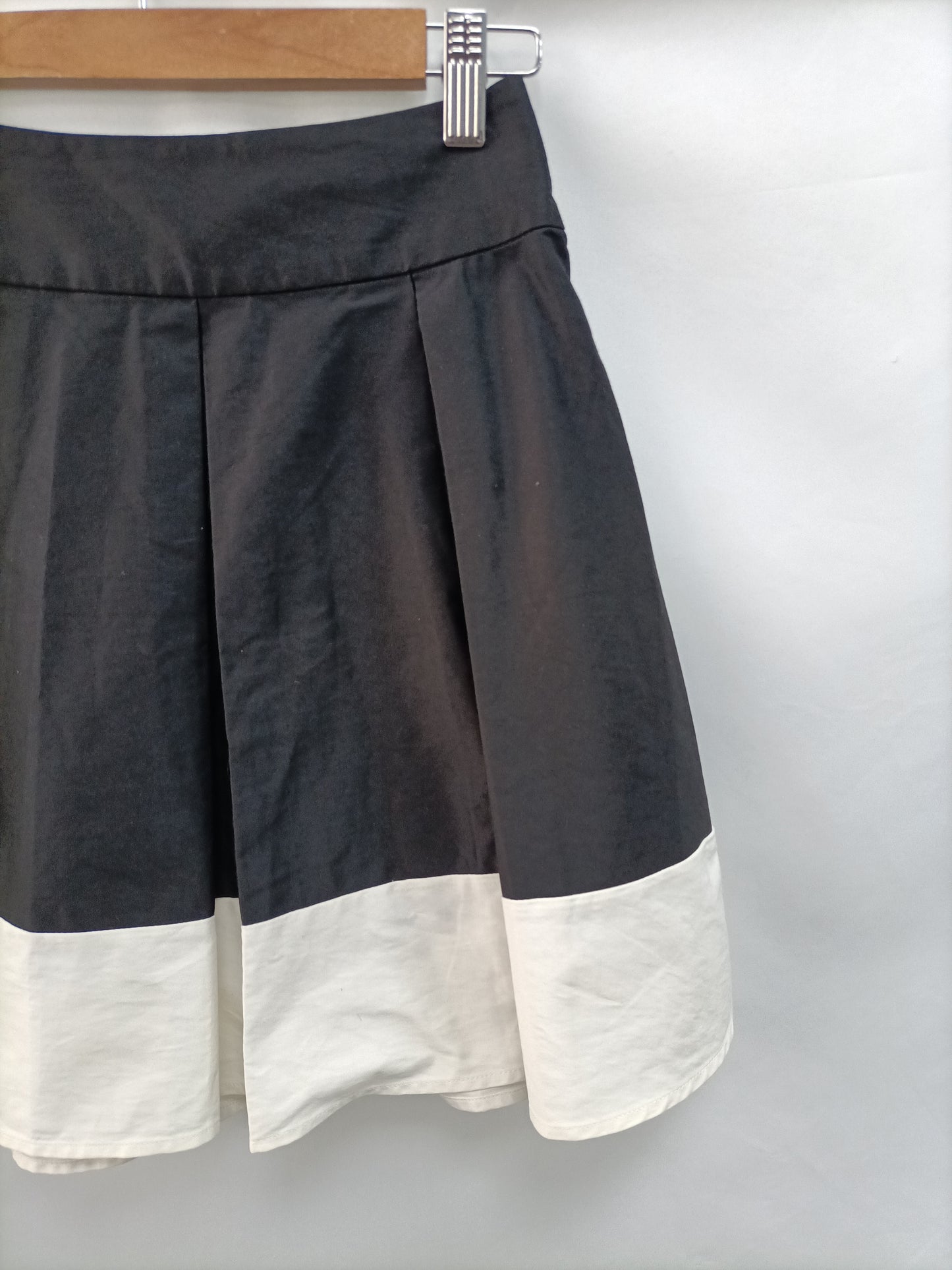 Falda negra y blanca con tablas. Cremallera en la parte de atrás. No es elástica.