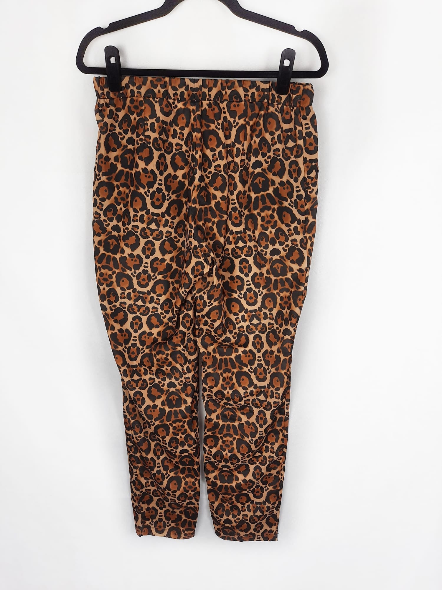 Pantalón fluido animal print con cintura elástica. Largo 104 cm