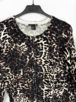 Rebeca animal print en tonos negros y marrones, es muy elastica.