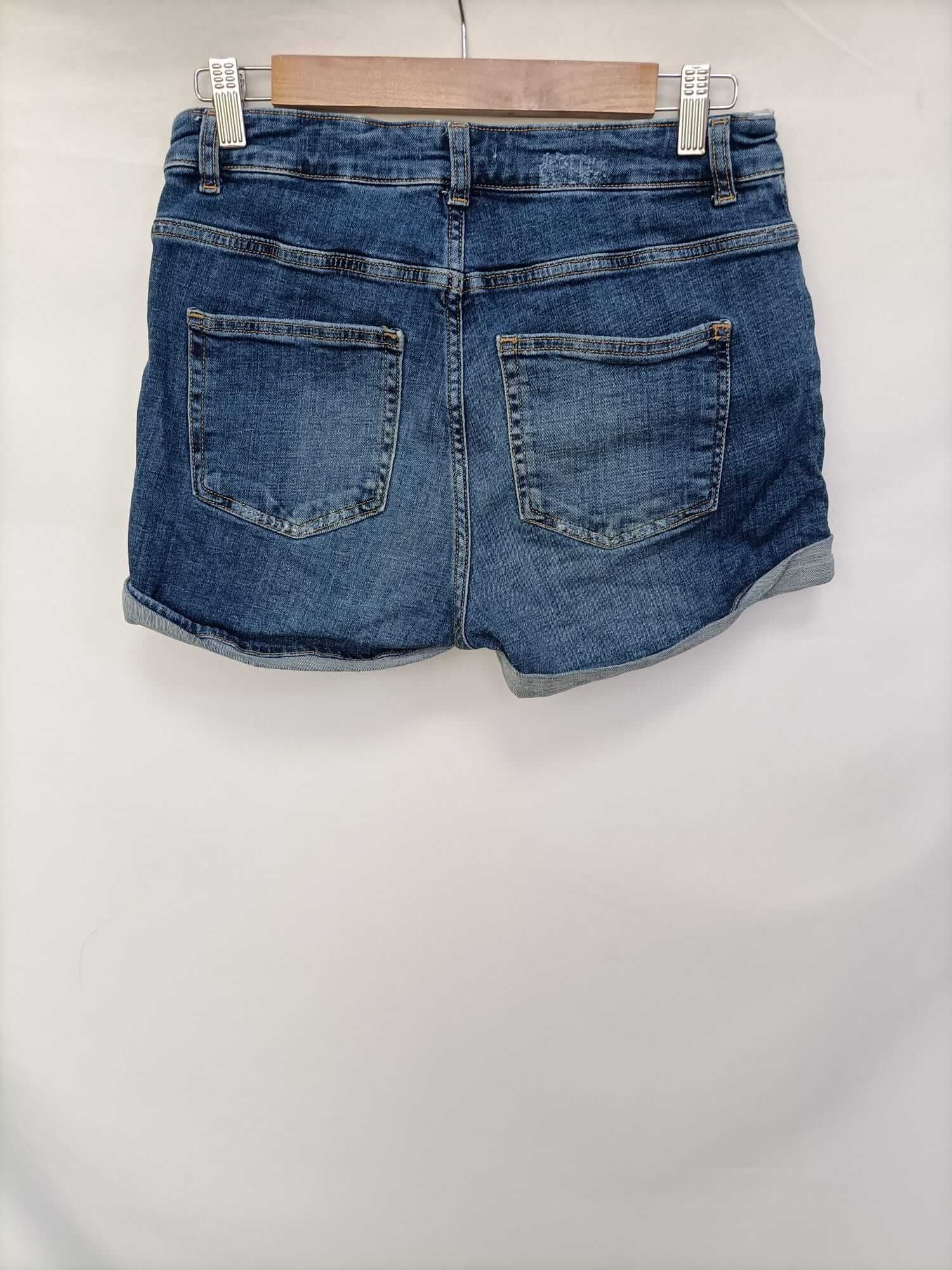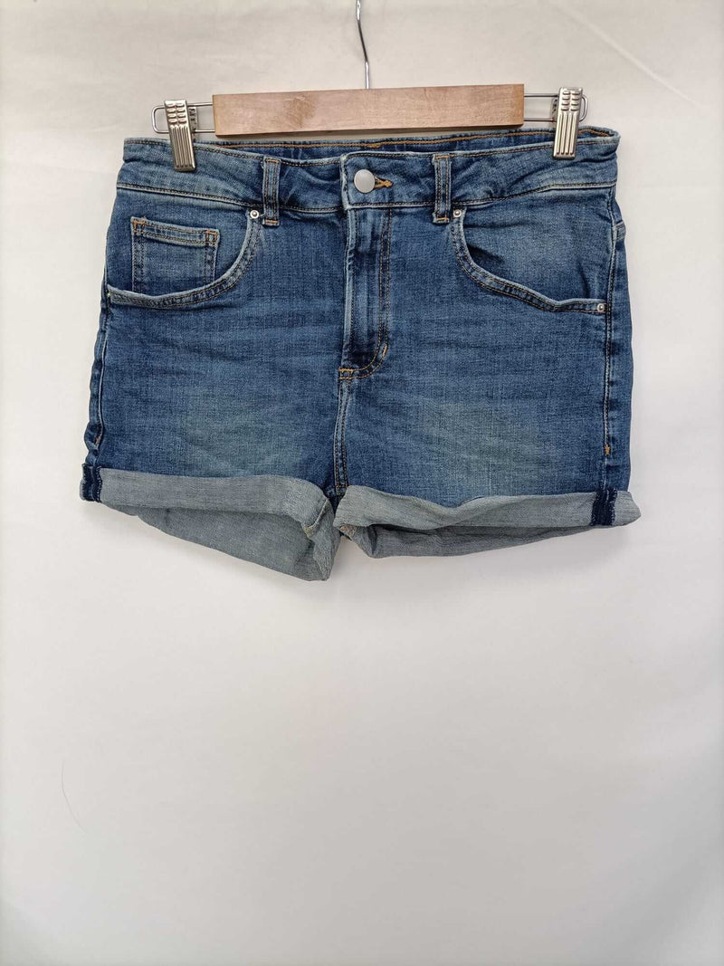 Hym. 36. Shorts denim elástico con dobladillo. Cintura 39 cm largo 32 cm