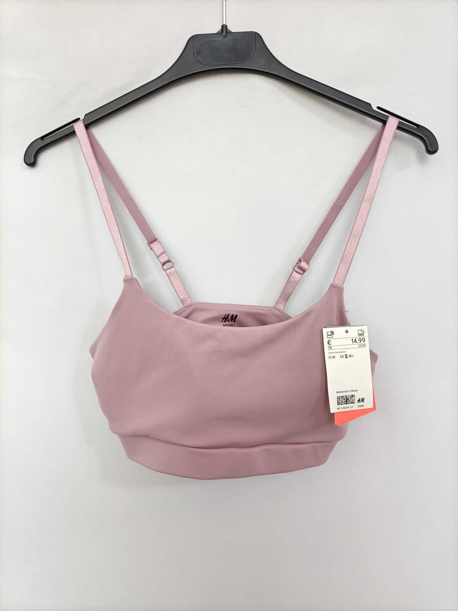 Hym. S. NUEVO CON ETIQUETA. Top deportivo rosa palo. Tirantes ajustables. Relleno de sujetador. Elastico.
