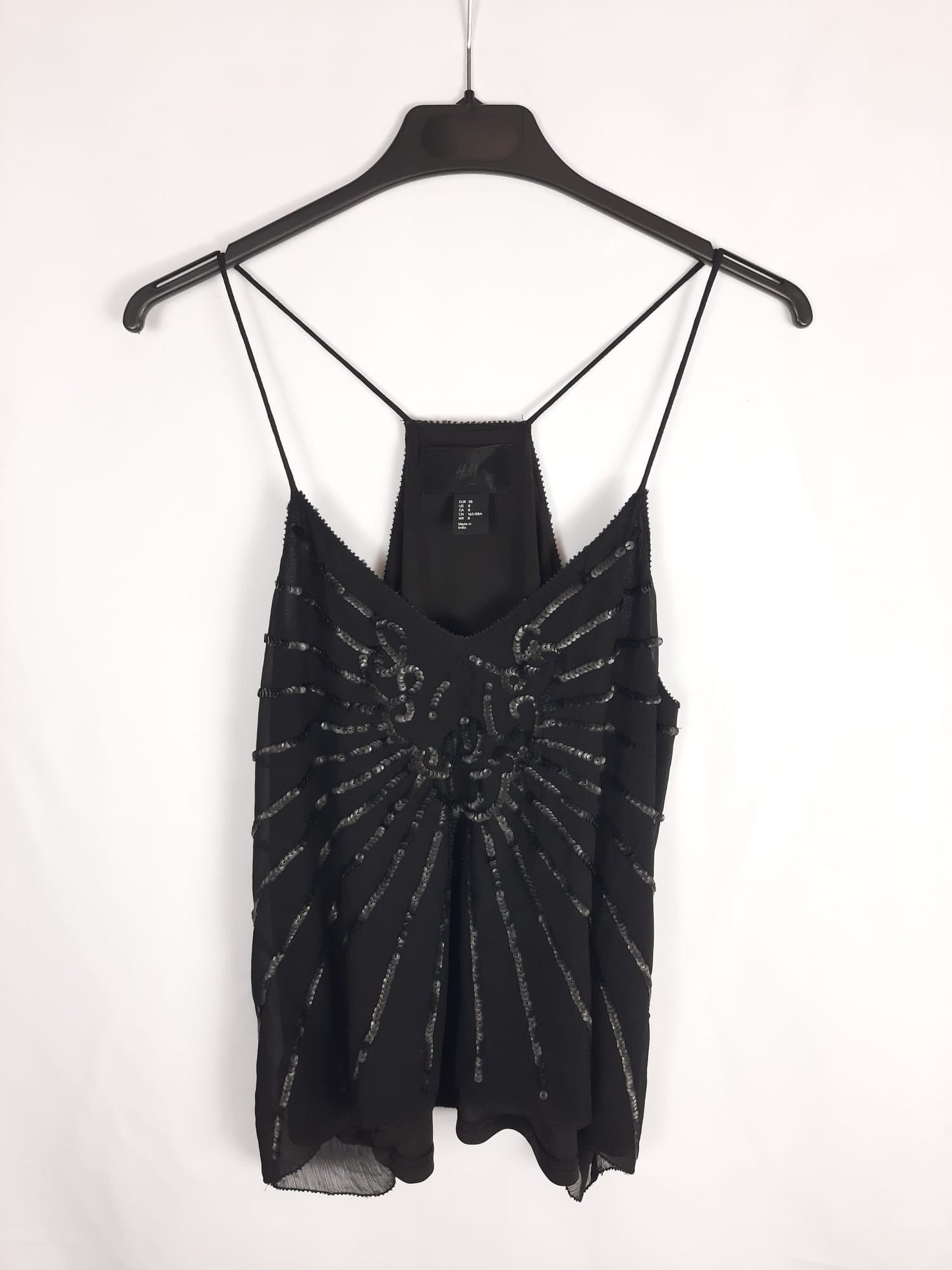 H&M. Top negro lentejuelas T. 38