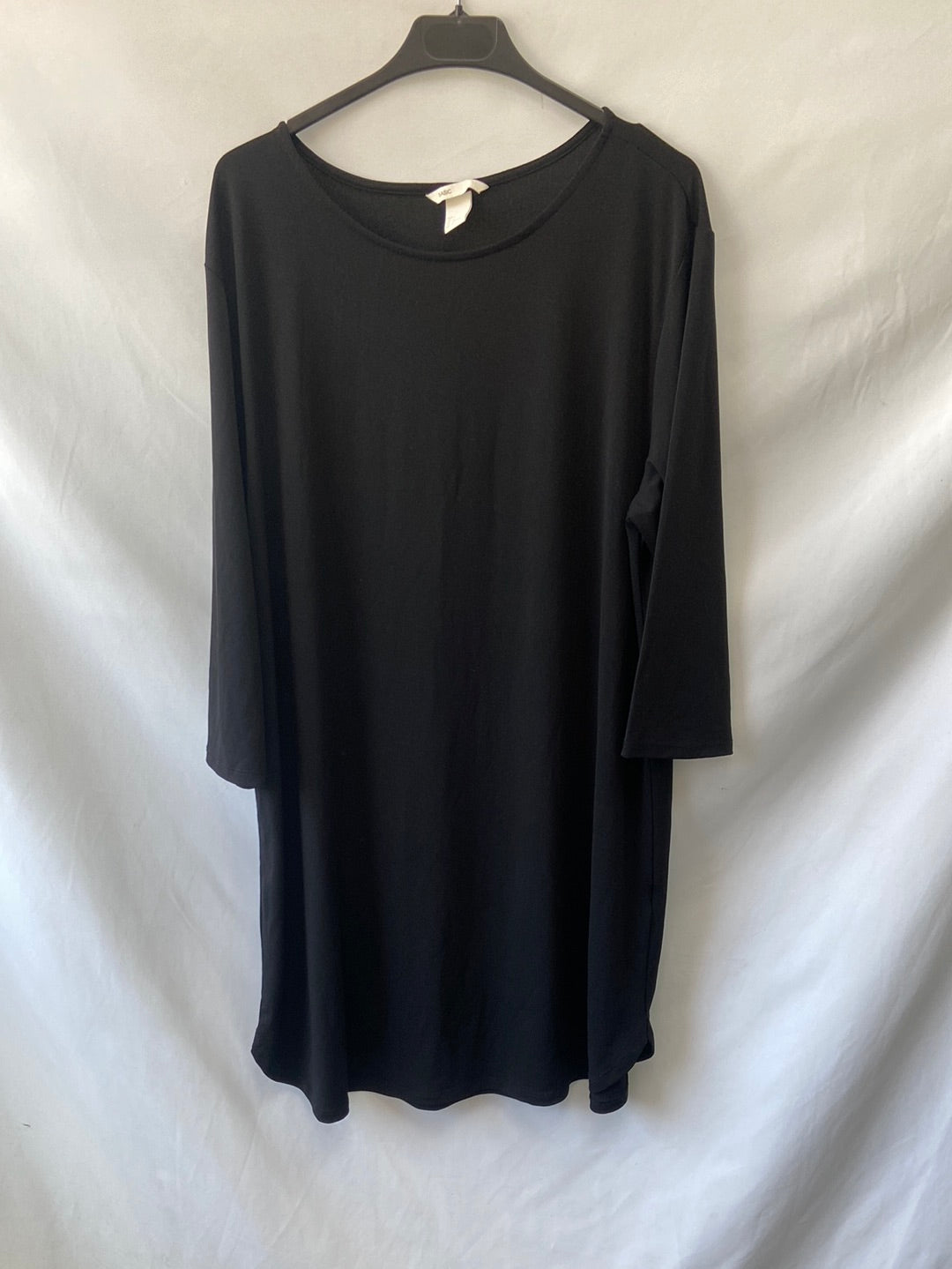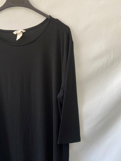 Vestido negro básico de tejido muy elástico, manga larga fluido y fino. Largo 95 cm.
