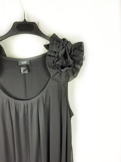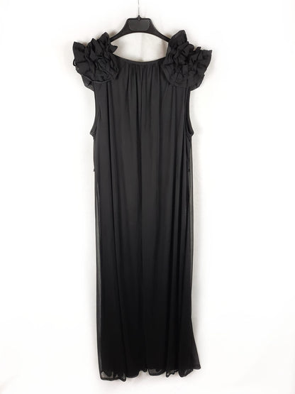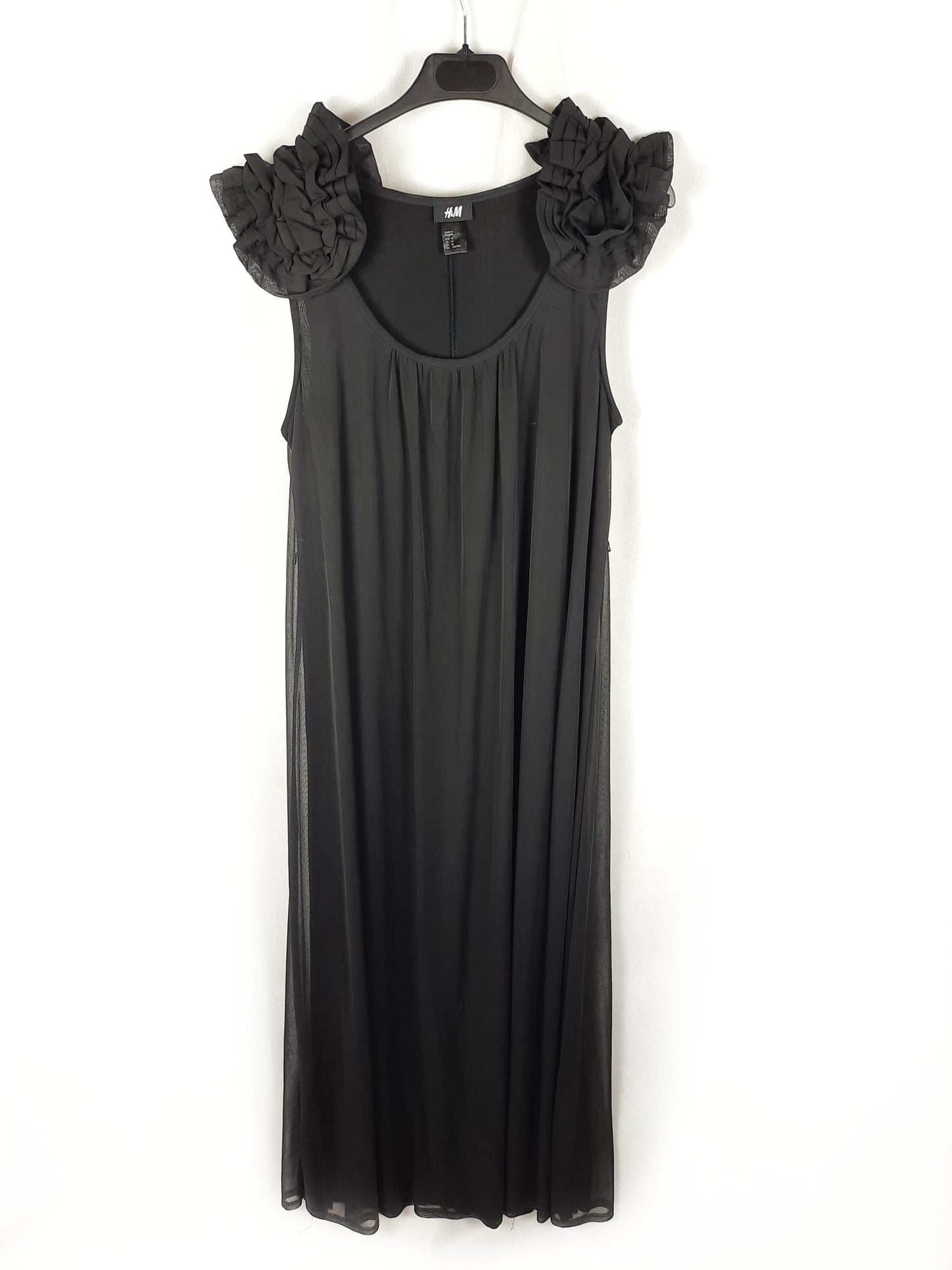 Vestido largo de tejido tipo tull fluido con flores en los hombros.