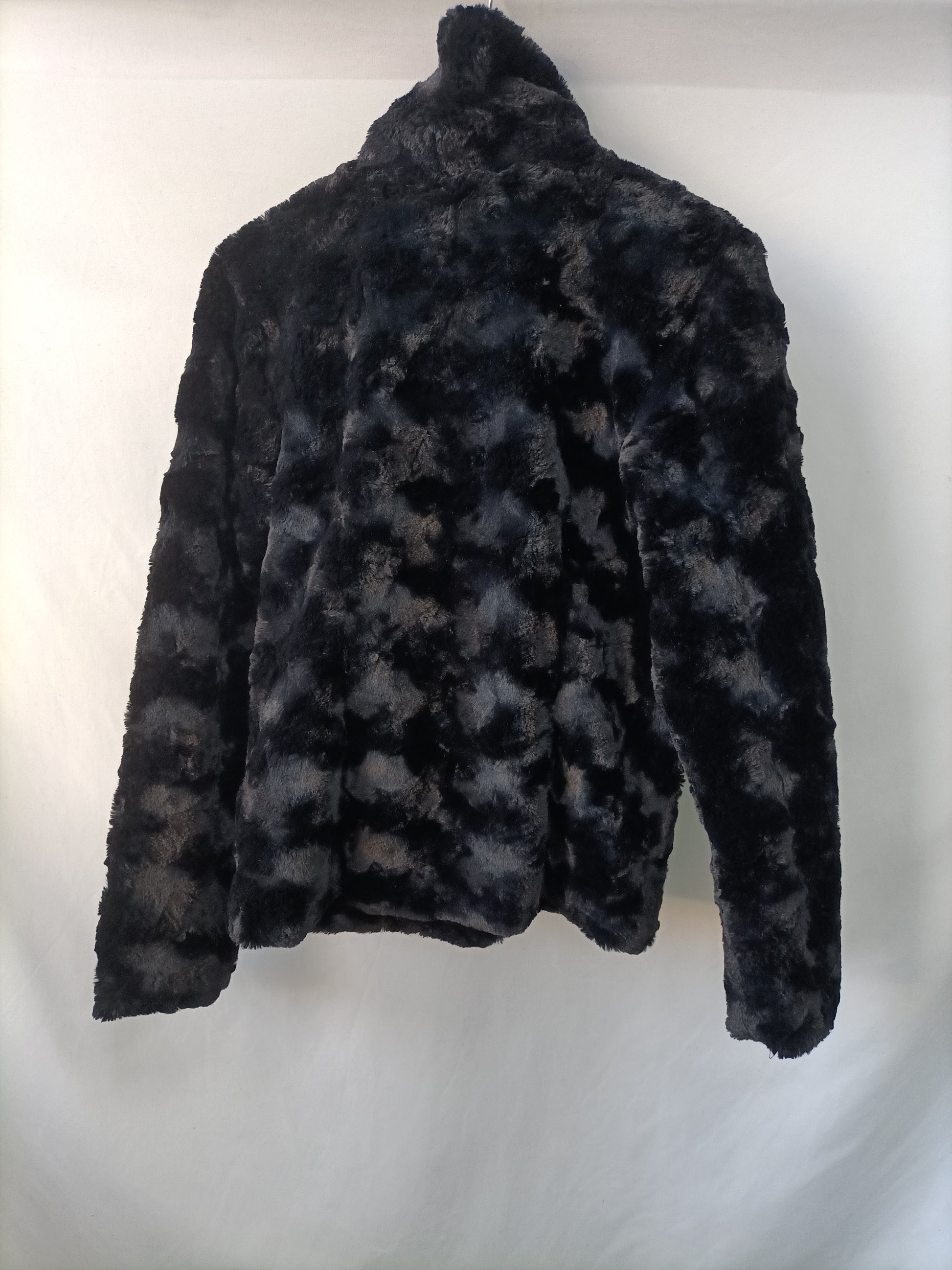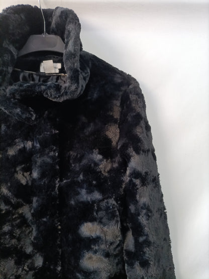 Abrigo cortito de pelo negro. Muy suave. Se abrocha con botones. Largo 69 cm