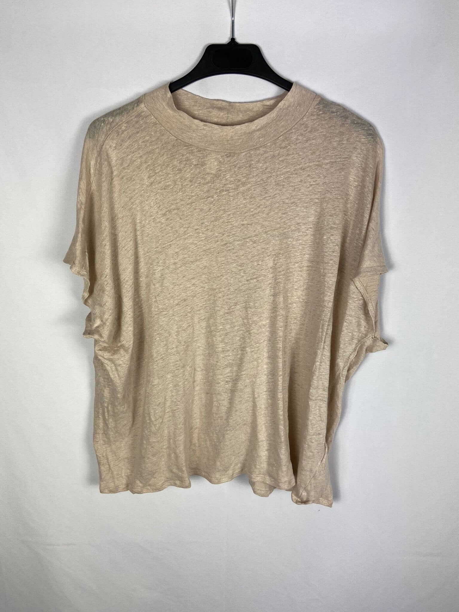 H&M L. Camiseta beige Lino con cuello tortuga. Fluida y finita. Oversized.