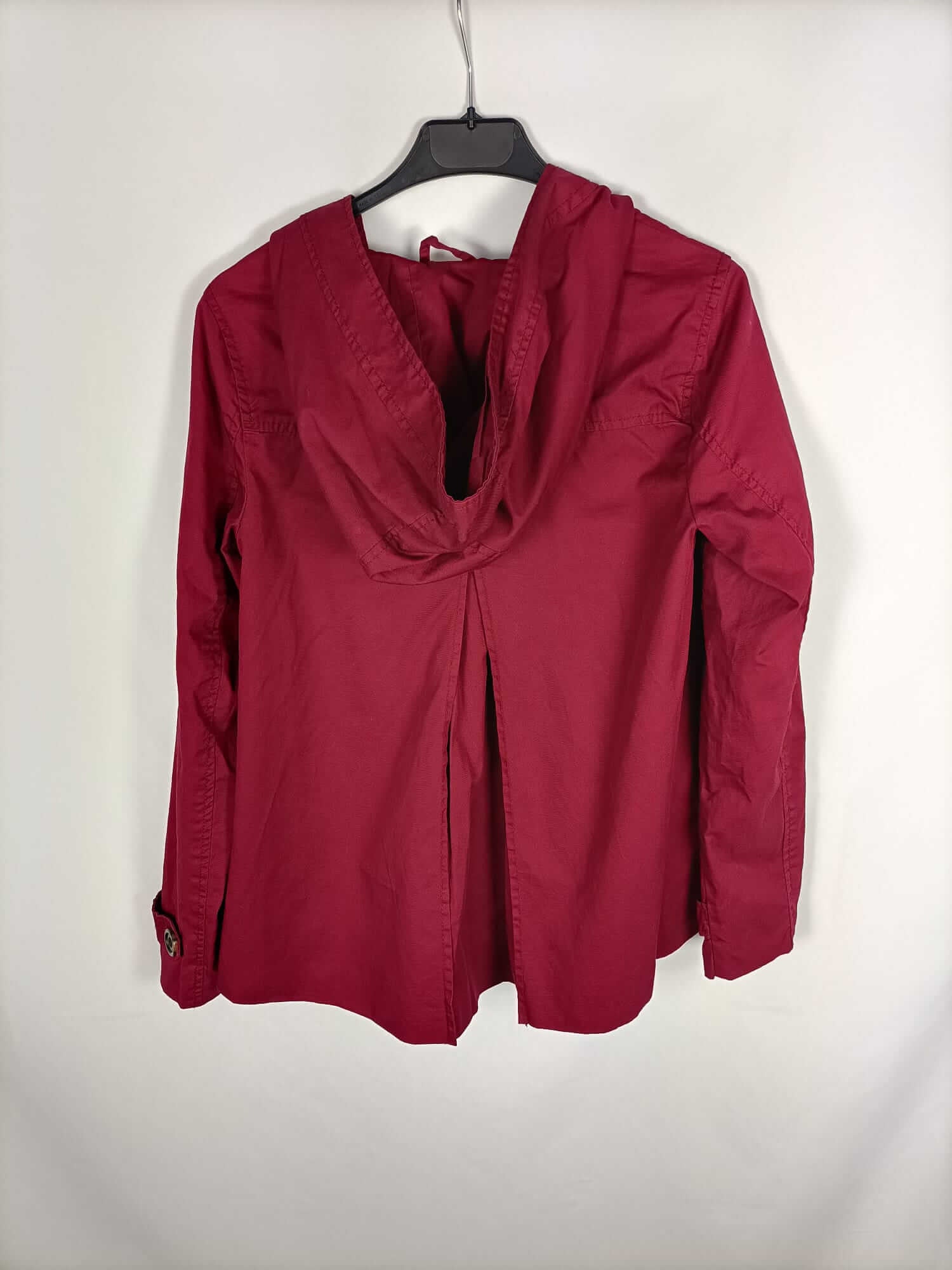 Hym. 34. Trench burdeos Abotonado con capucha. No elástico. De sisa a sisa 43 cm largo 66 cm