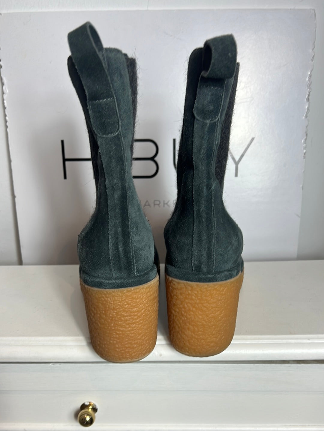 Botines azules plataforma. Tara: la piel tiene alguna marca pero la suela está nueva sin uso