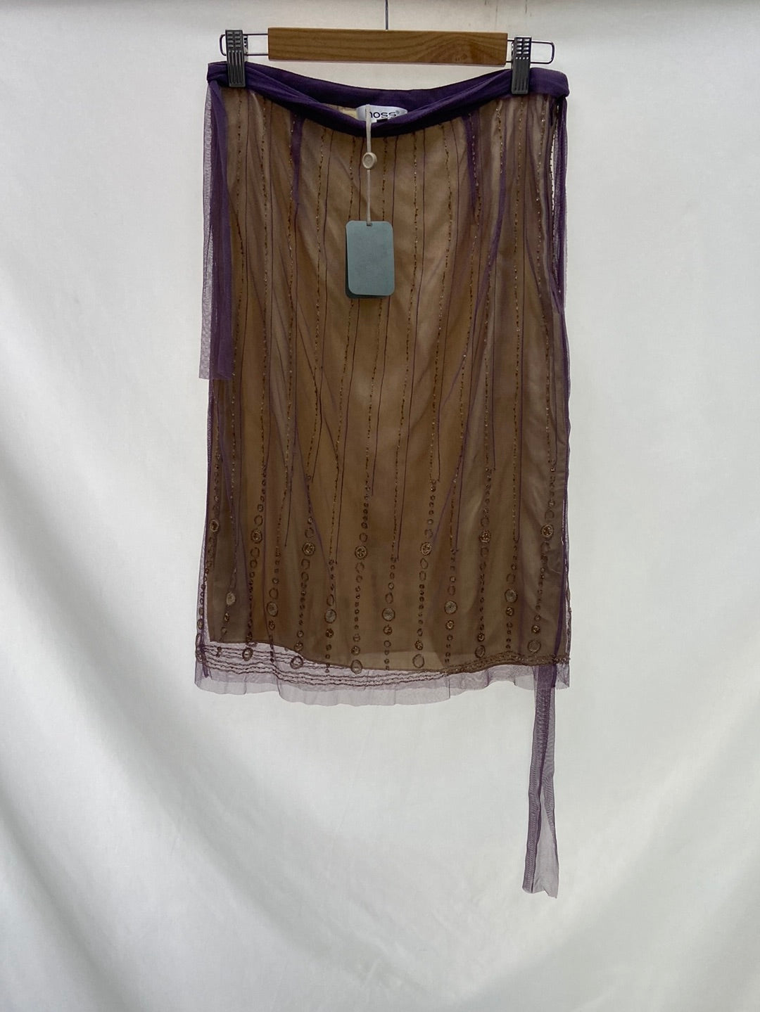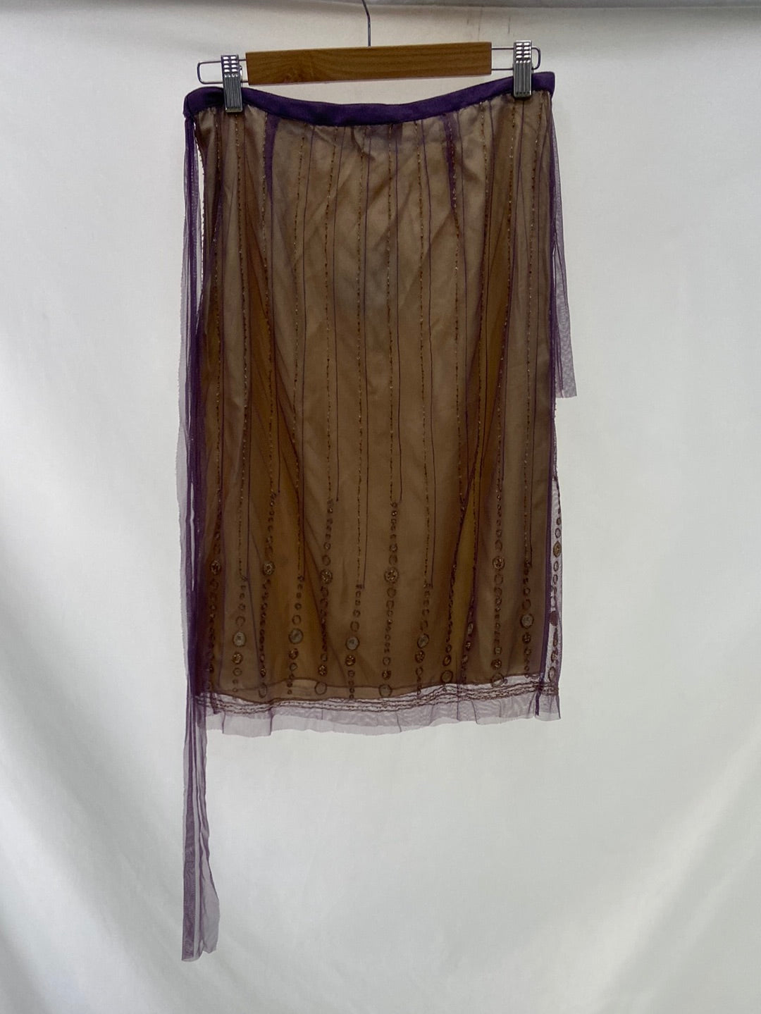 NUEVOS CON ETIQUETA. falda de tul beige y morada con abalorios. Largo 64 cm