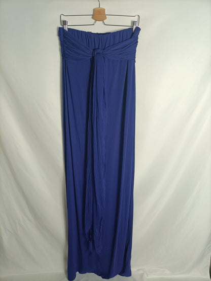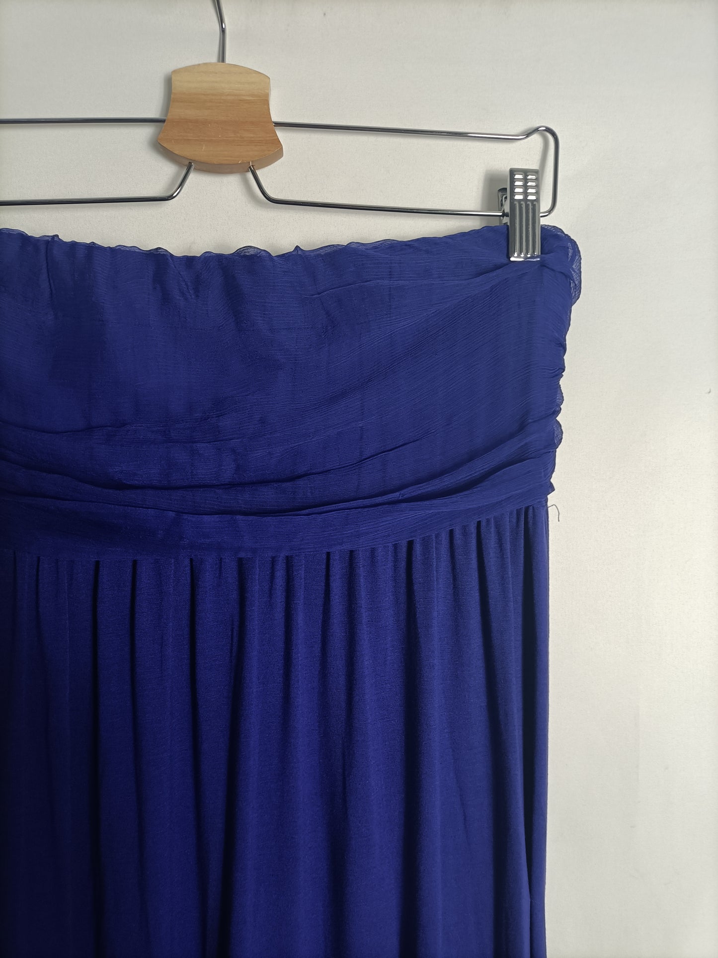 vestido largo palabra de honor con detalle en gasa. vestido elástico.