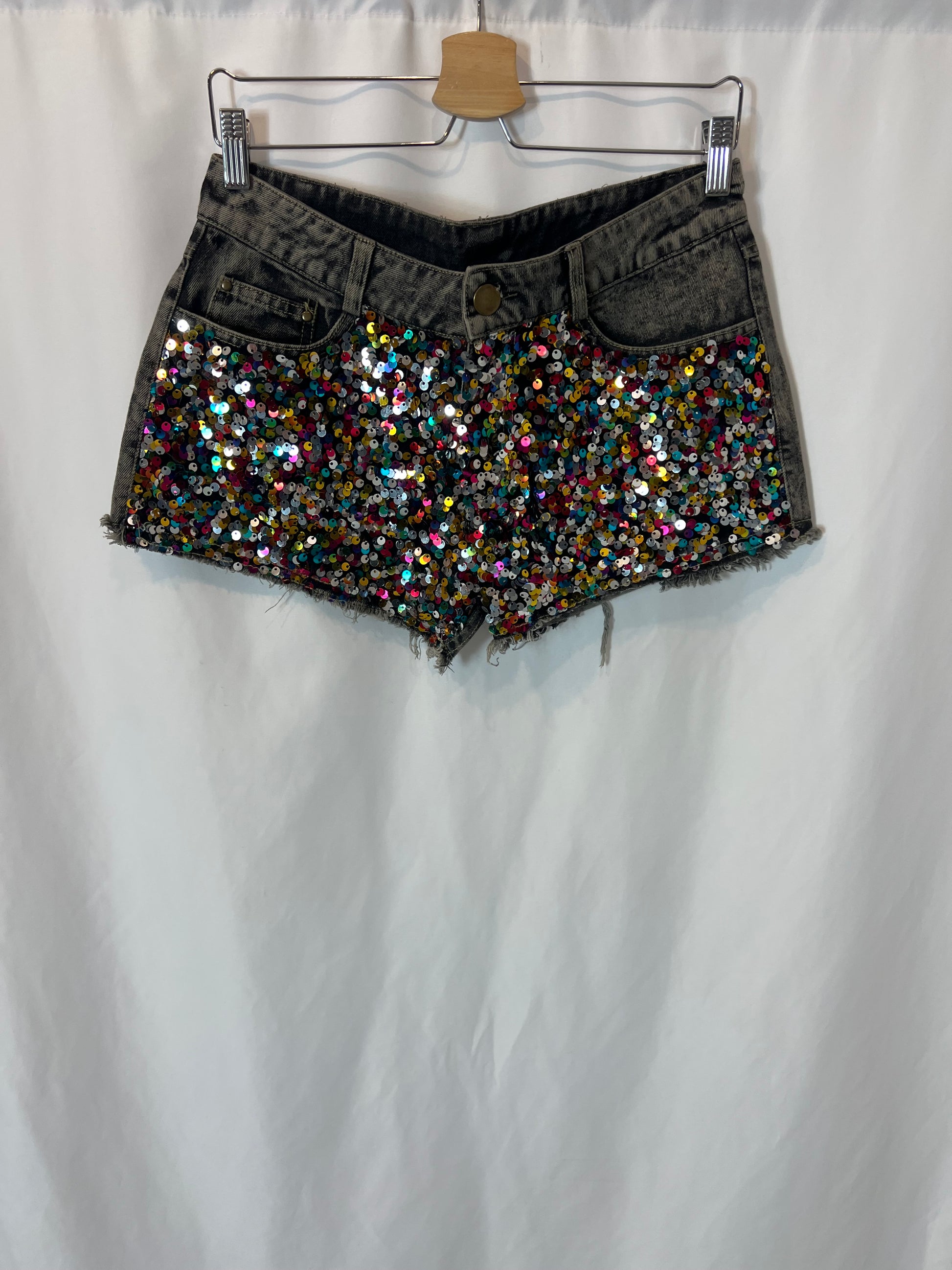 Short denim lentejuelas no elástico