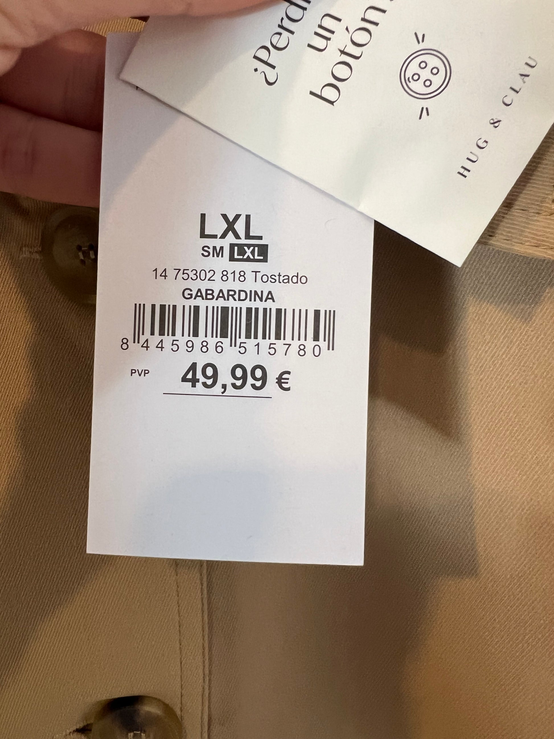 HUG & CLAU. Chaqueta beige efecto gabardina. T L/XL