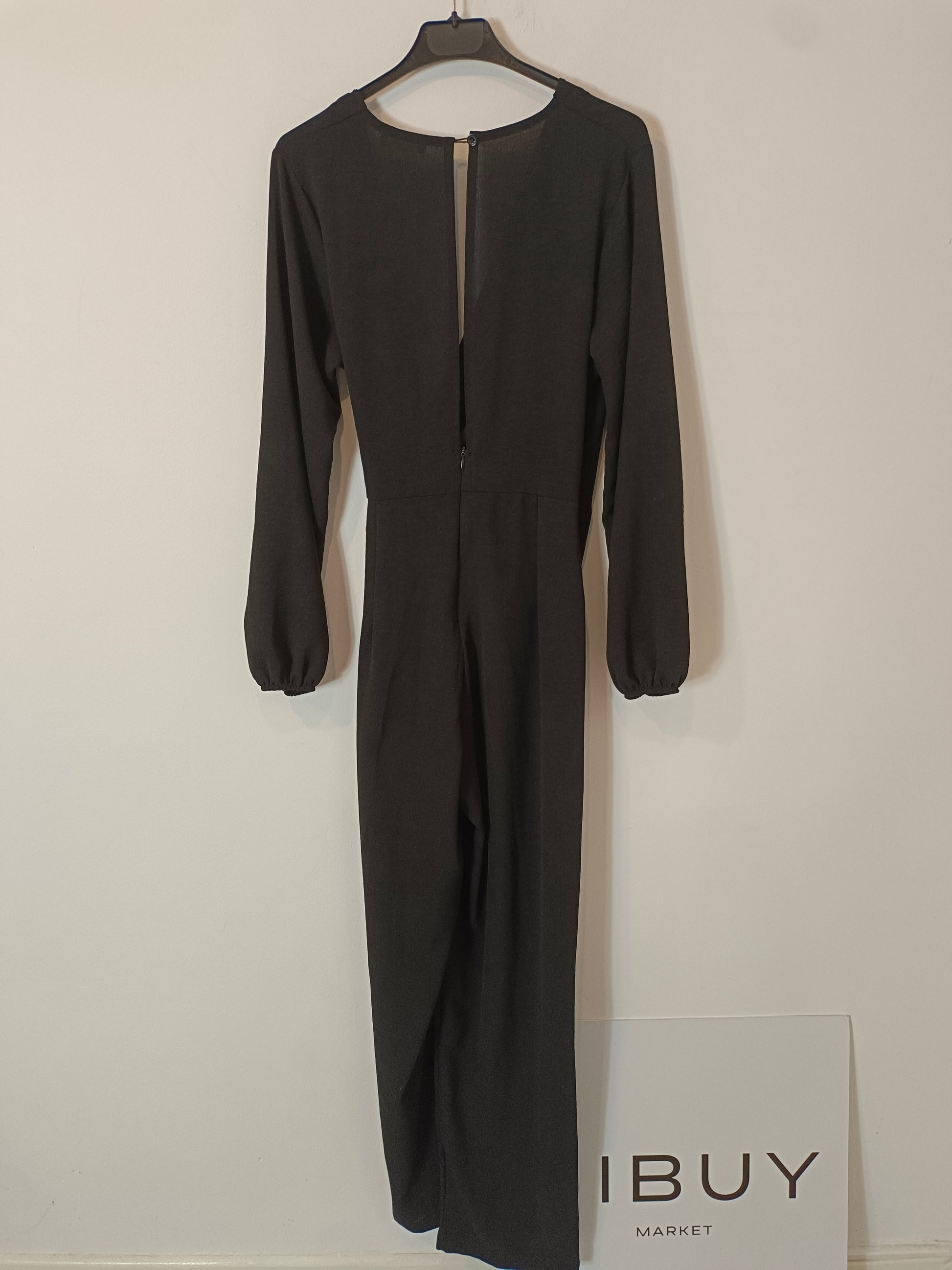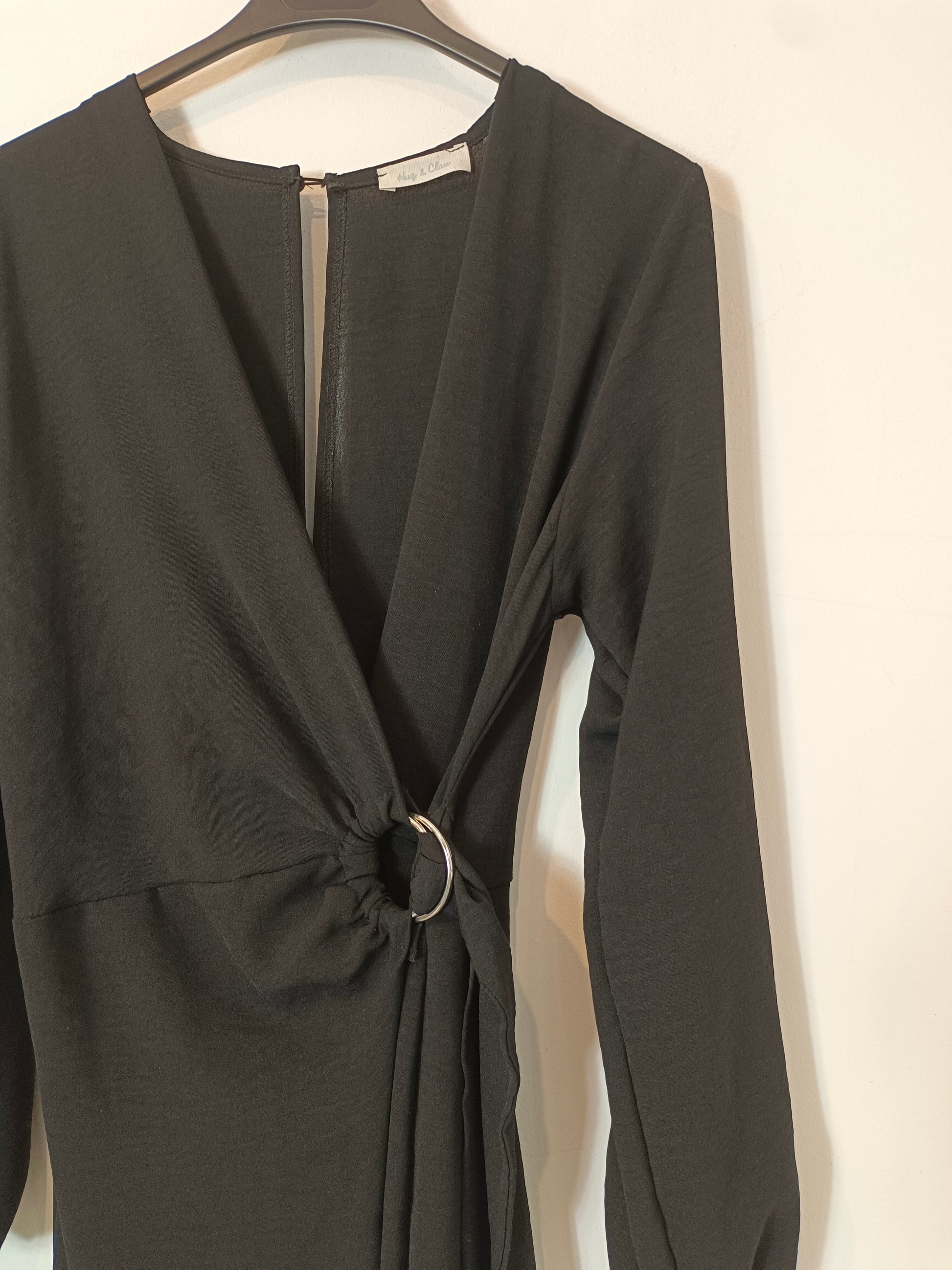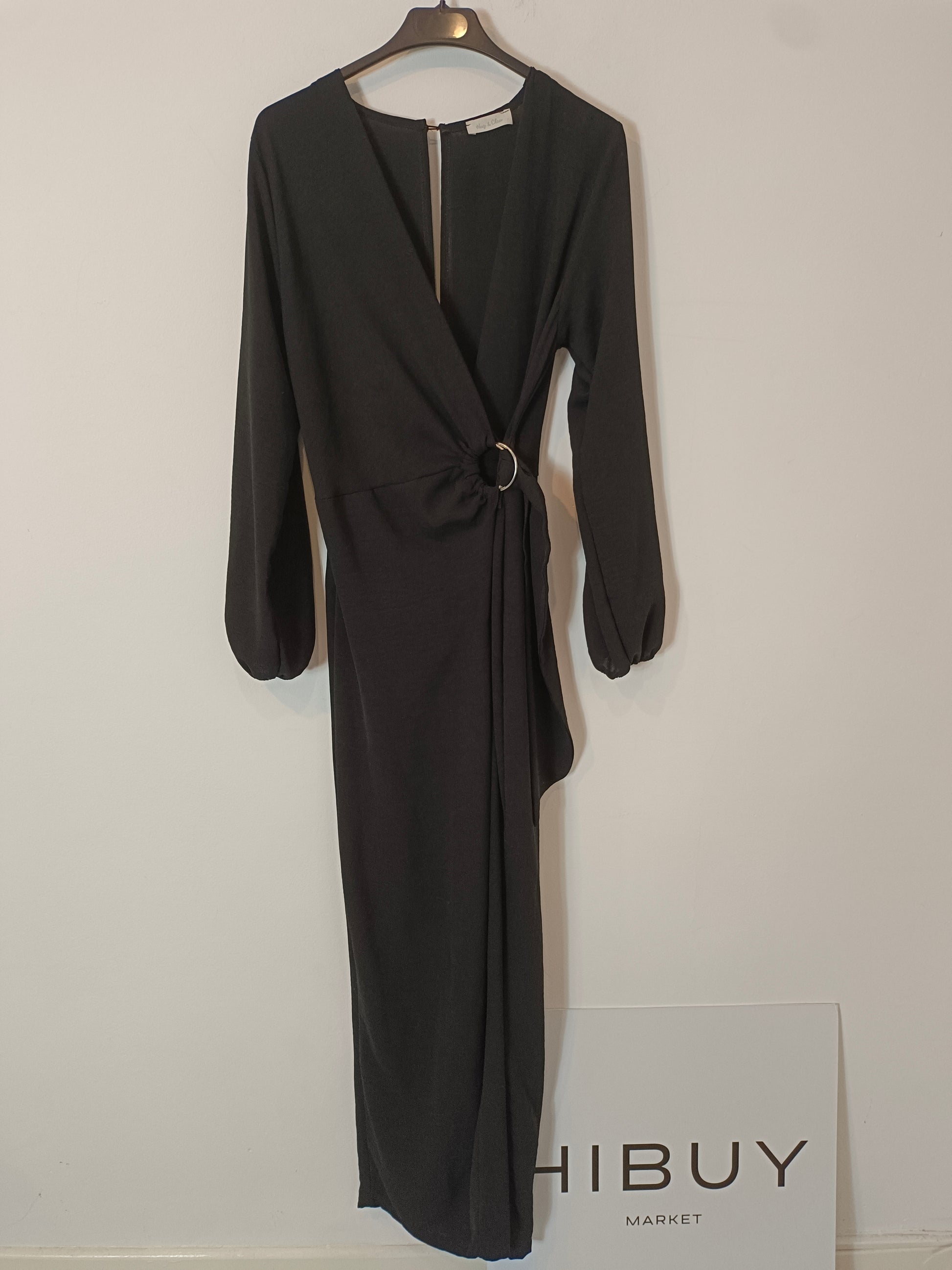 Mono largo fluido ancho negro con detalle de hebilla lateral