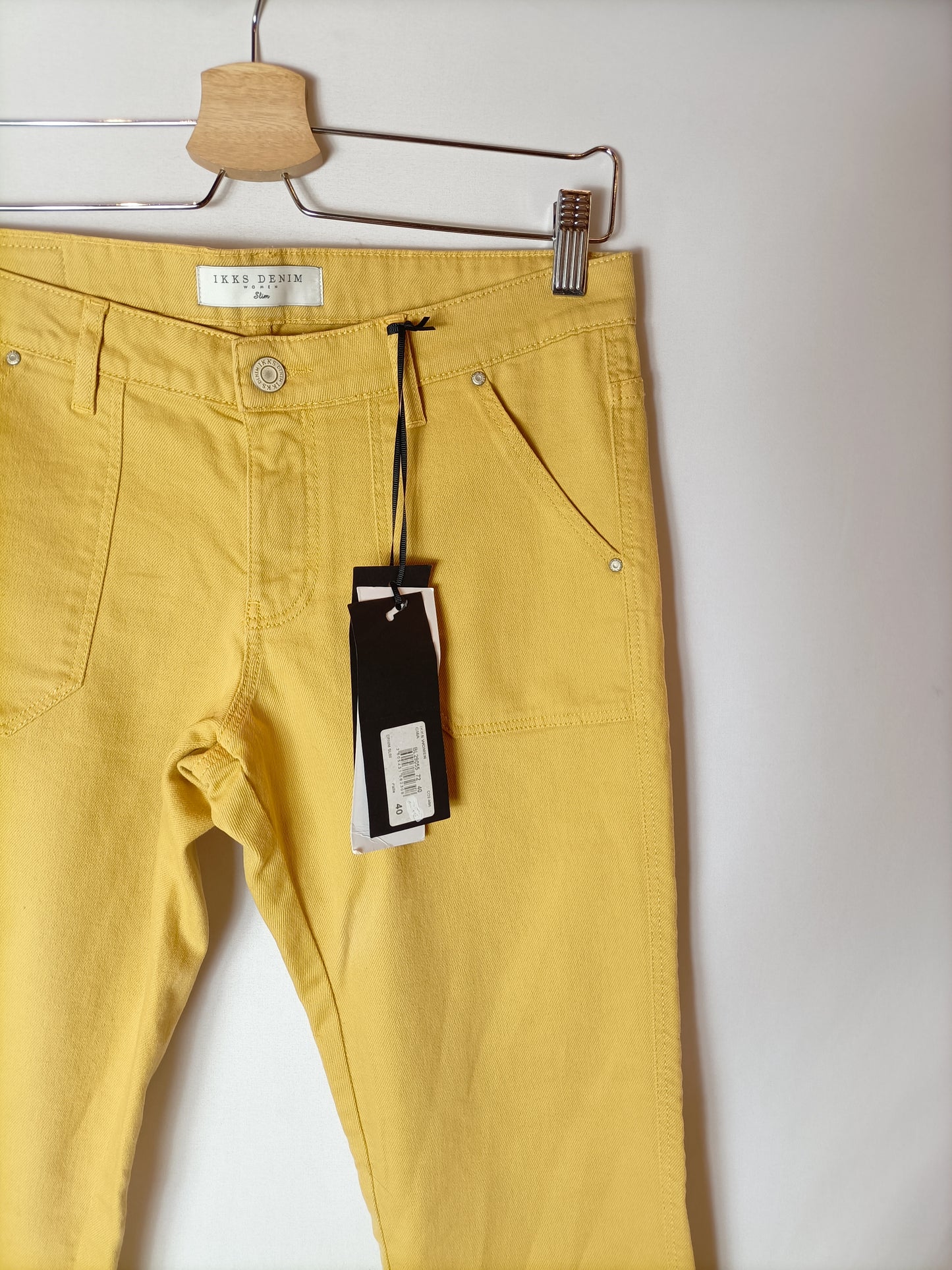 NUEVO CON ETIQUETA. Pantalones denim mostaza. Tejido semi elástico