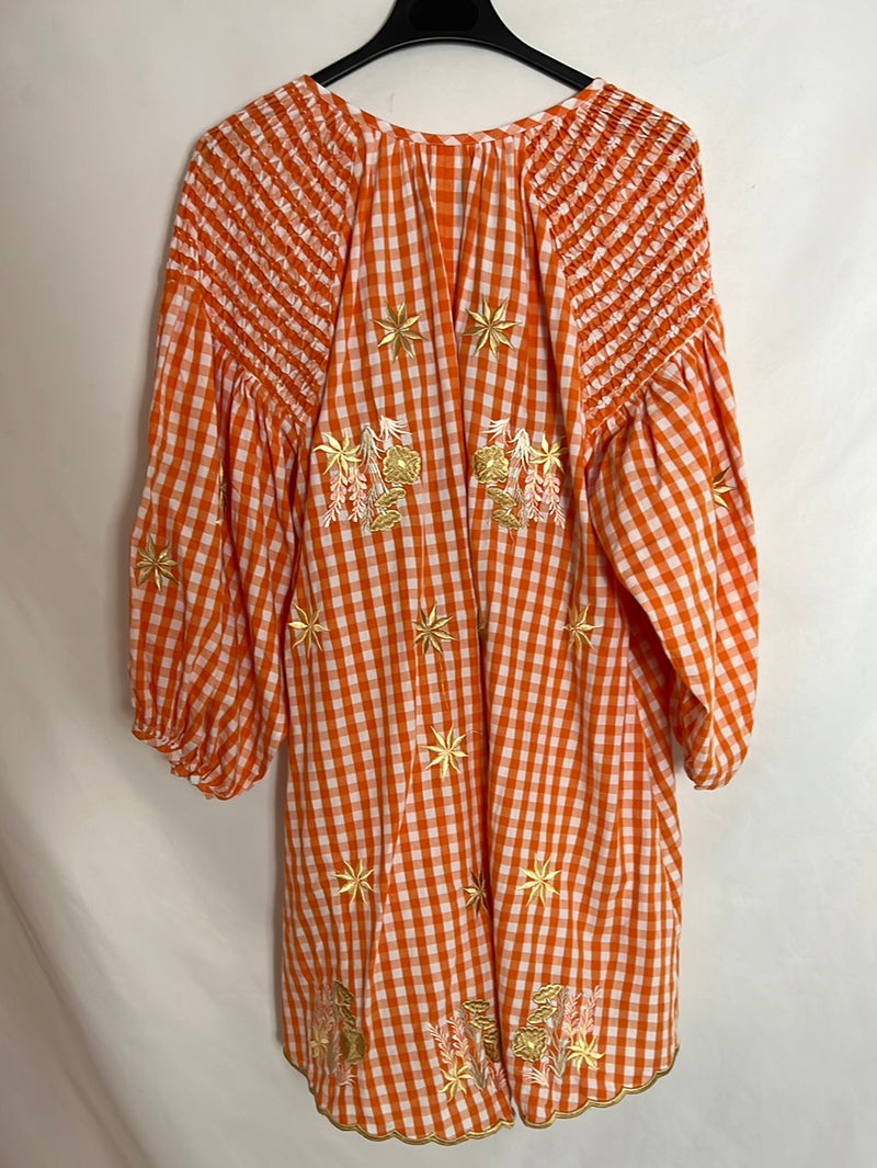 INNIKA CHOO. Vestido cuadros vichy manga abullonada. TU (S/M