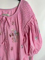 INNIKA CHOO. Vestido cuadros vichy rosa manga abullonada. TU (S/M)